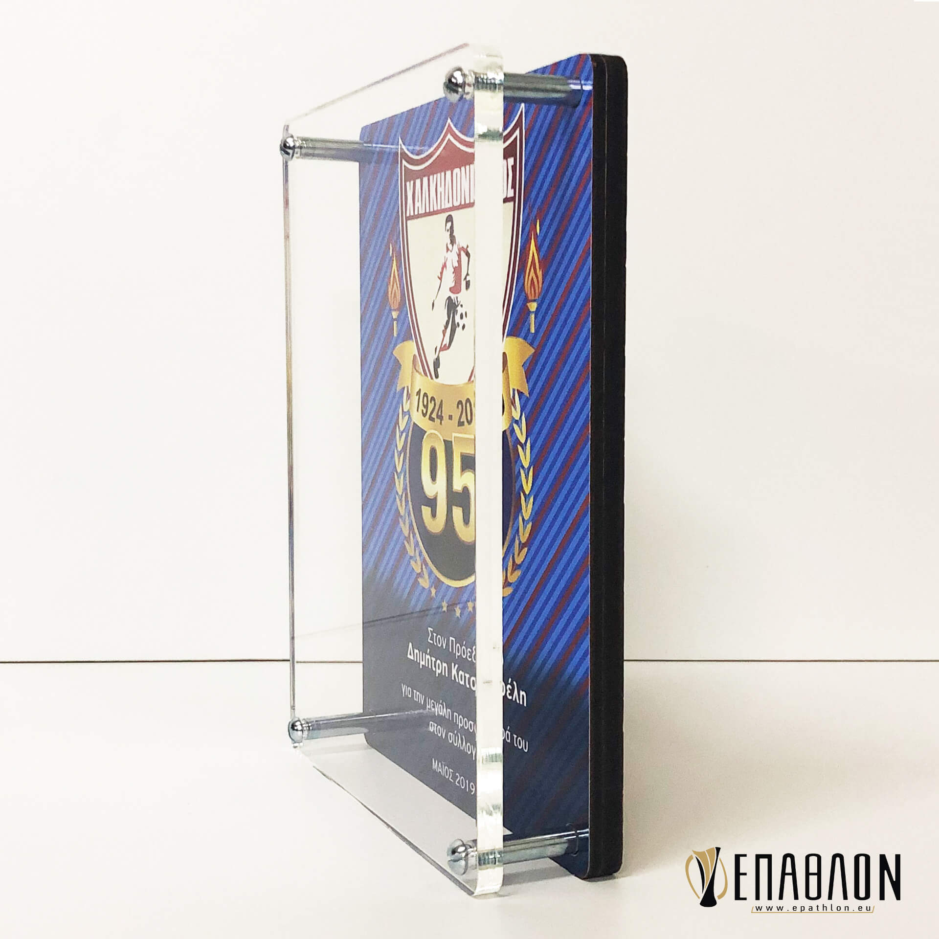 Custom αναμνηστική πλακέτα από ξύλο και ακρυλικό • Υλικά: Ξύλο πάχους 9mm, αυτοκόλλητο με ψηφιακή εκτύπωση, διάφανο ακρυλικό πάχους 8mm