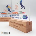 Custom αναμνηστική πλακέτα από ακρυλικό και ξύλινη βάση • Διάσταση: 20×16,5cm • Υλικά: Διάφανο ακρυλικό πάχους 6mm με έγχρωμη ψηφιακή εκτύπωση, βάση από μασίφ ξύλο δρυς με χάραξη
