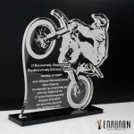 Custom αναμνηστική πλακέτα από ακρυλικό • Υλικά: Ακρυλικό διάφανο πάχους 8mm με χάραξη, βάση από μαύρο ακρυλικό
