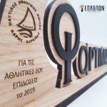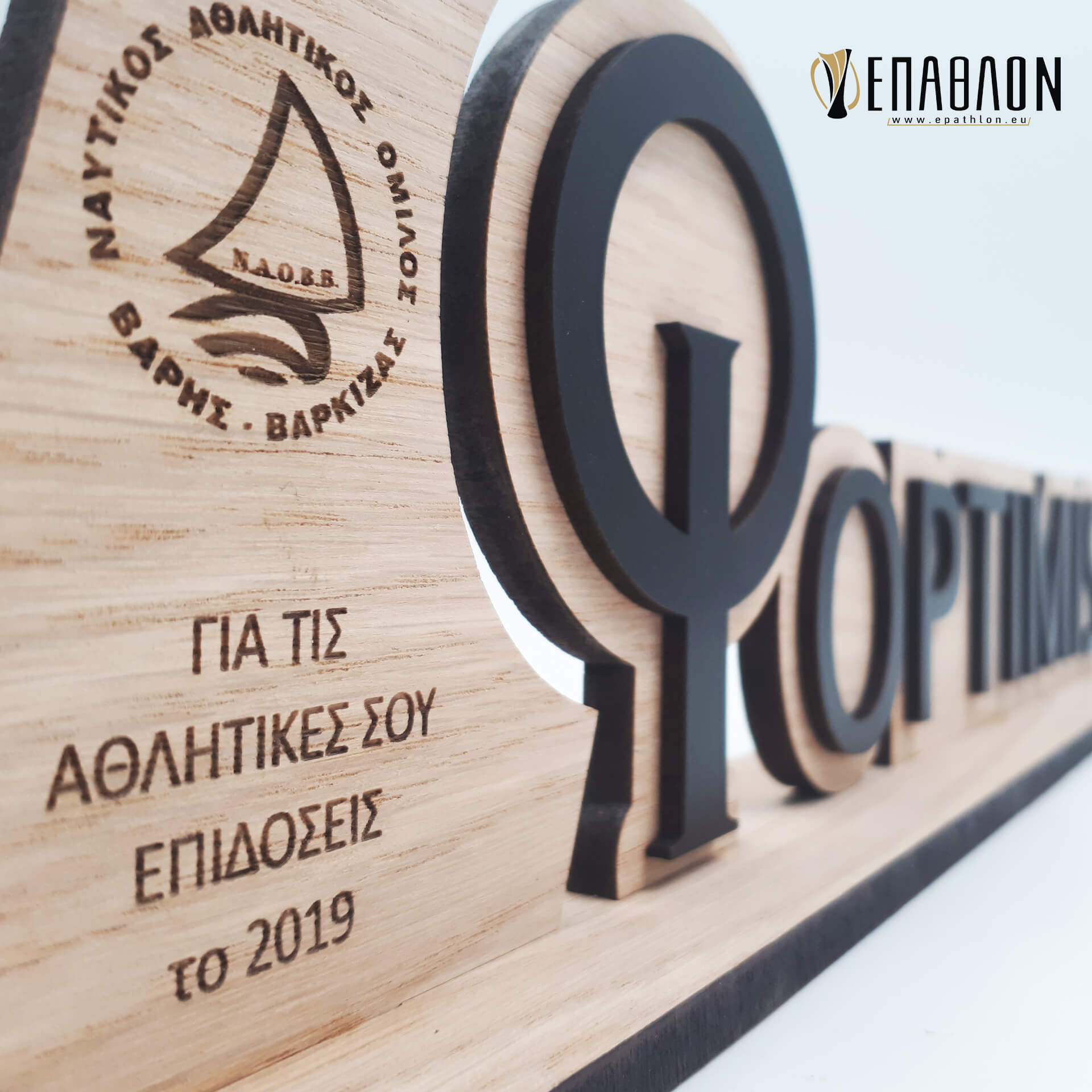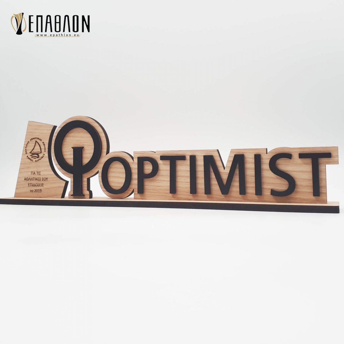 Custom αναμνηστική πλακέτα από το συνδυασμό ξύλων • Υλικά: Πλάτη από ξύλο πάχους 7mm με χάραξη, χρωματισμένο ξύλο πάχους 3mm, βάση από ξύλο