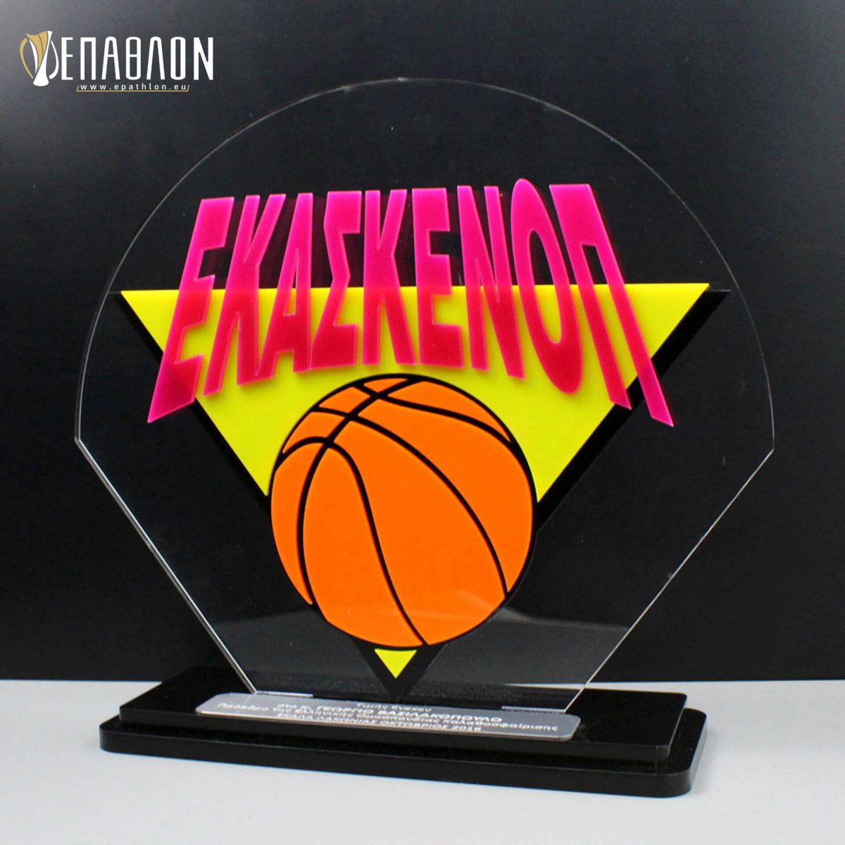 Custom αναμνηστικό βασισμένο στο λογότυπο της ΕΚΑΣΚΕΝΟΠ • Υλικά: Διάφανο ακρυλικό πάχους 8mm, μαύρο,κίτρινο,πορτοκαλί,φούξια ακρυλικό πάχους 3mm Βάση από μαύρο ακρυλικό