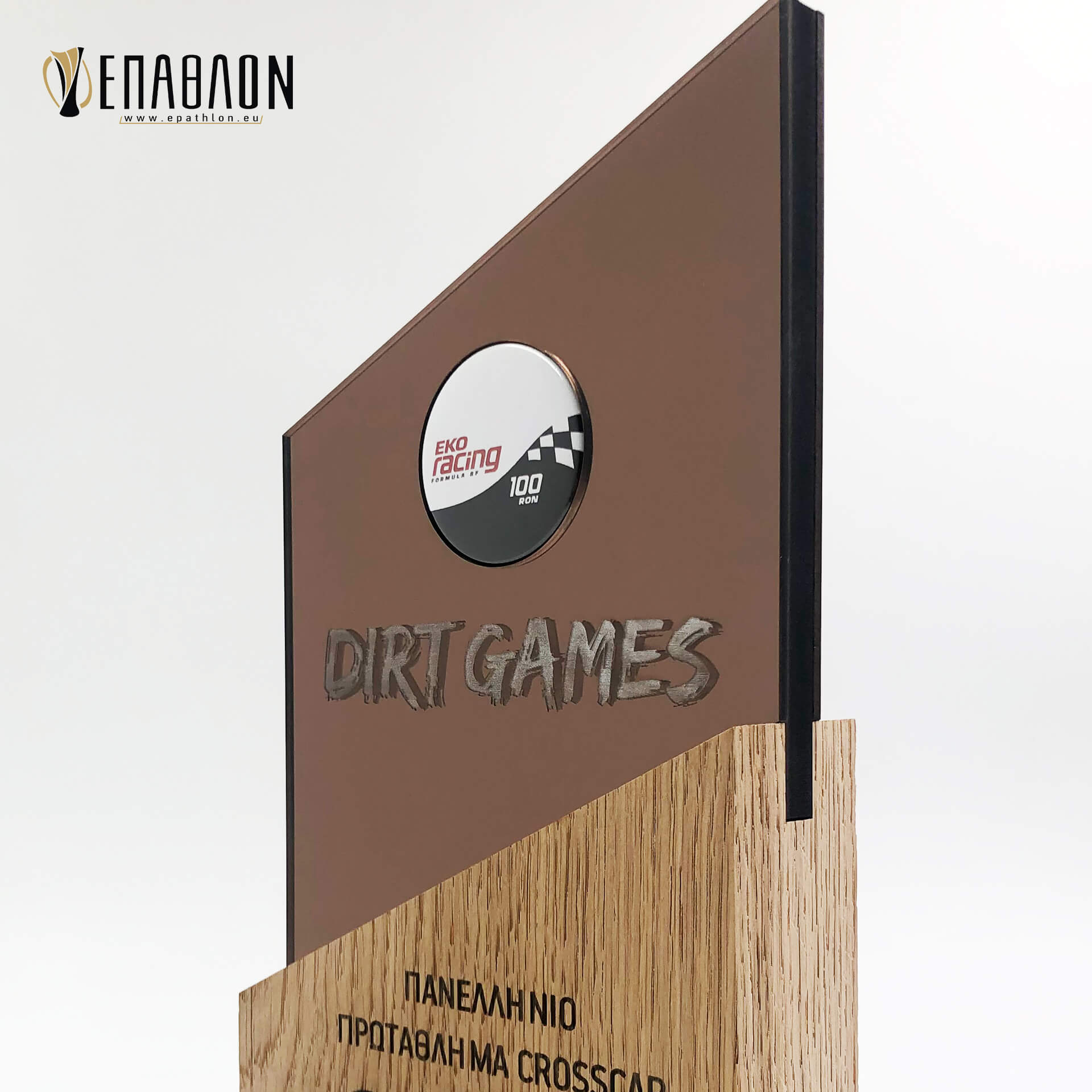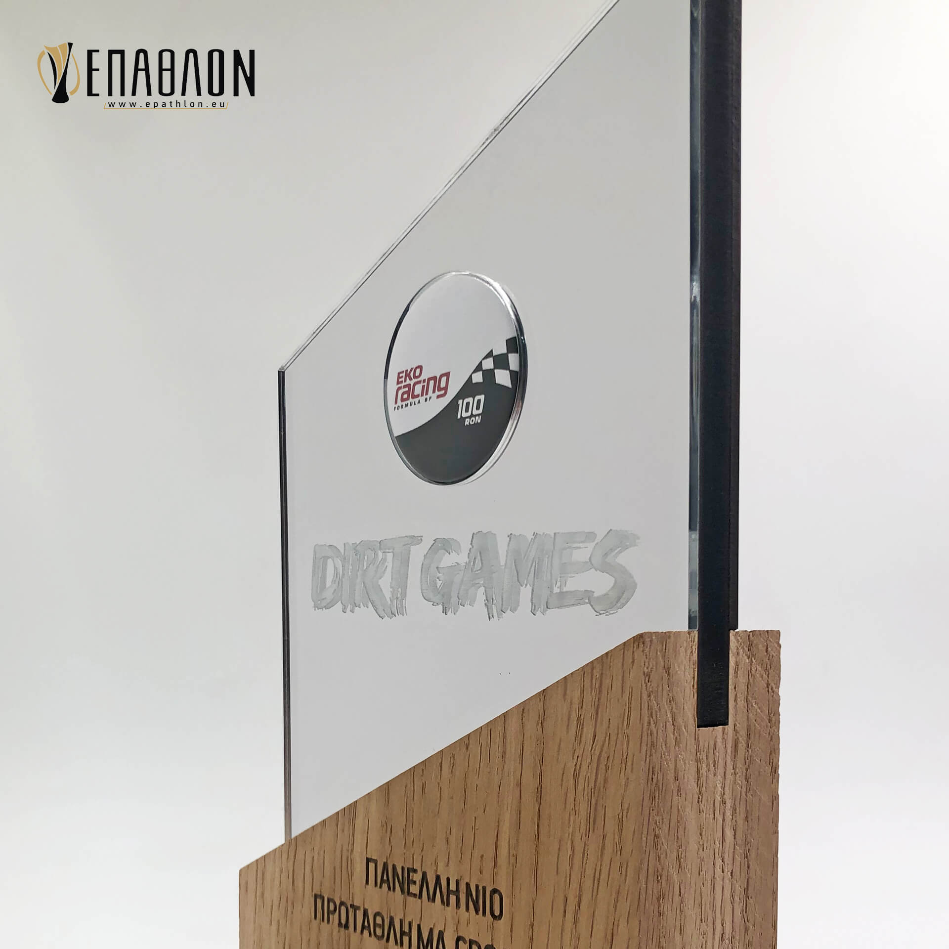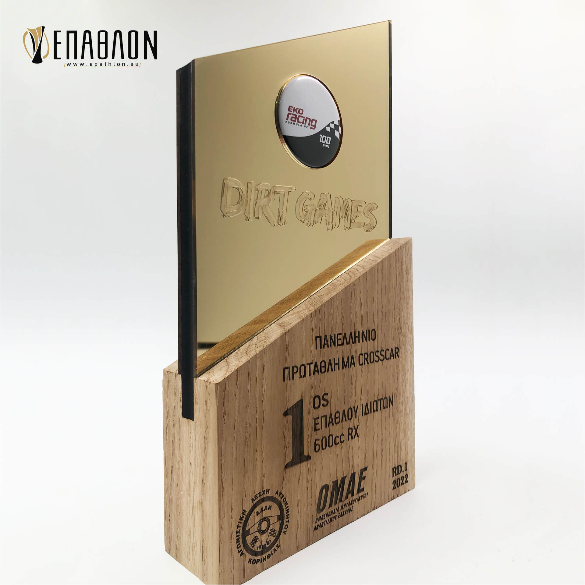 Custom ξύλινο έπαθλο με συνδυασμό ξύλων και ακρυλικού καθρέπτη