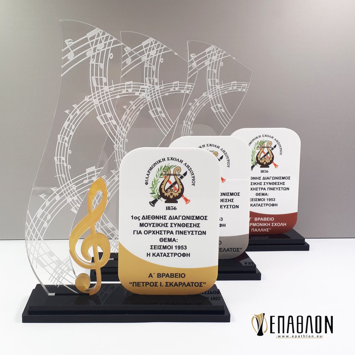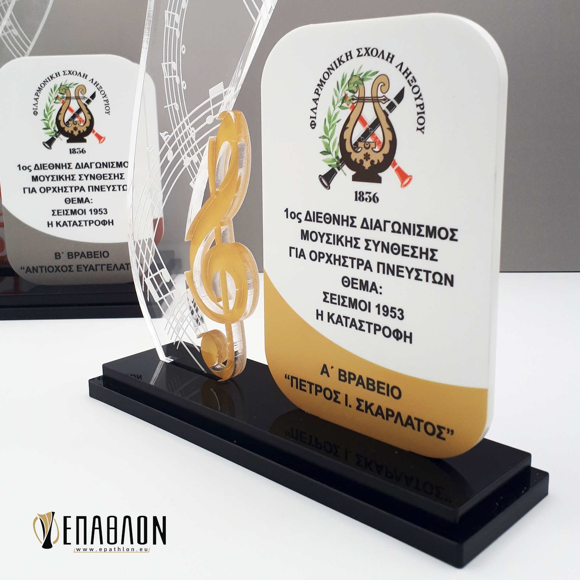 Custom έπαθλο με θέμα μουσική για τη Φιλαρμονική Σχολή Ληξουρίου