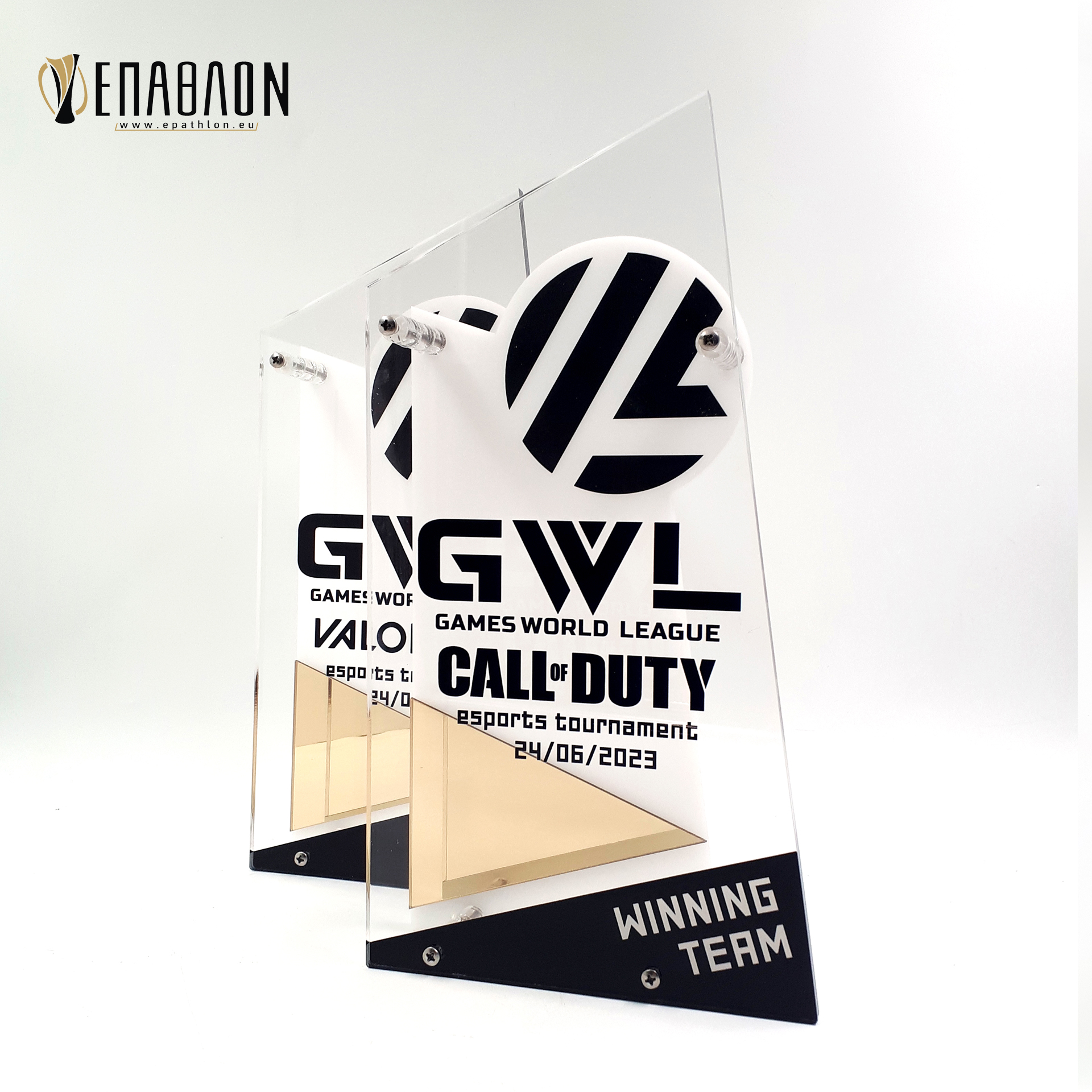 Custom έπαθλο από συνδυασμό ακρυλικών για το Games World Leaugue