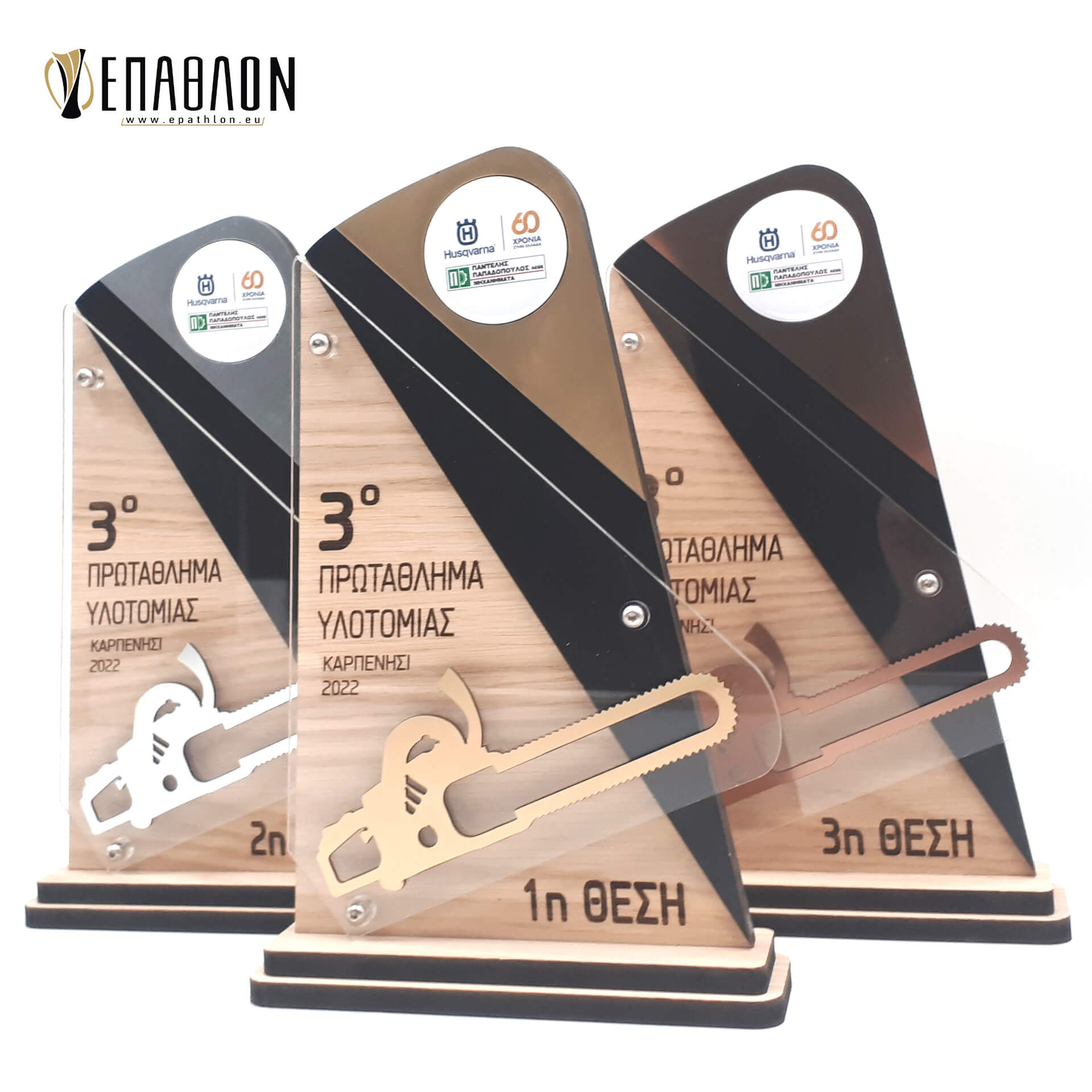 Custom έπαθλο με συνδυασμό ξύλων, ακρυλικού και Darwin