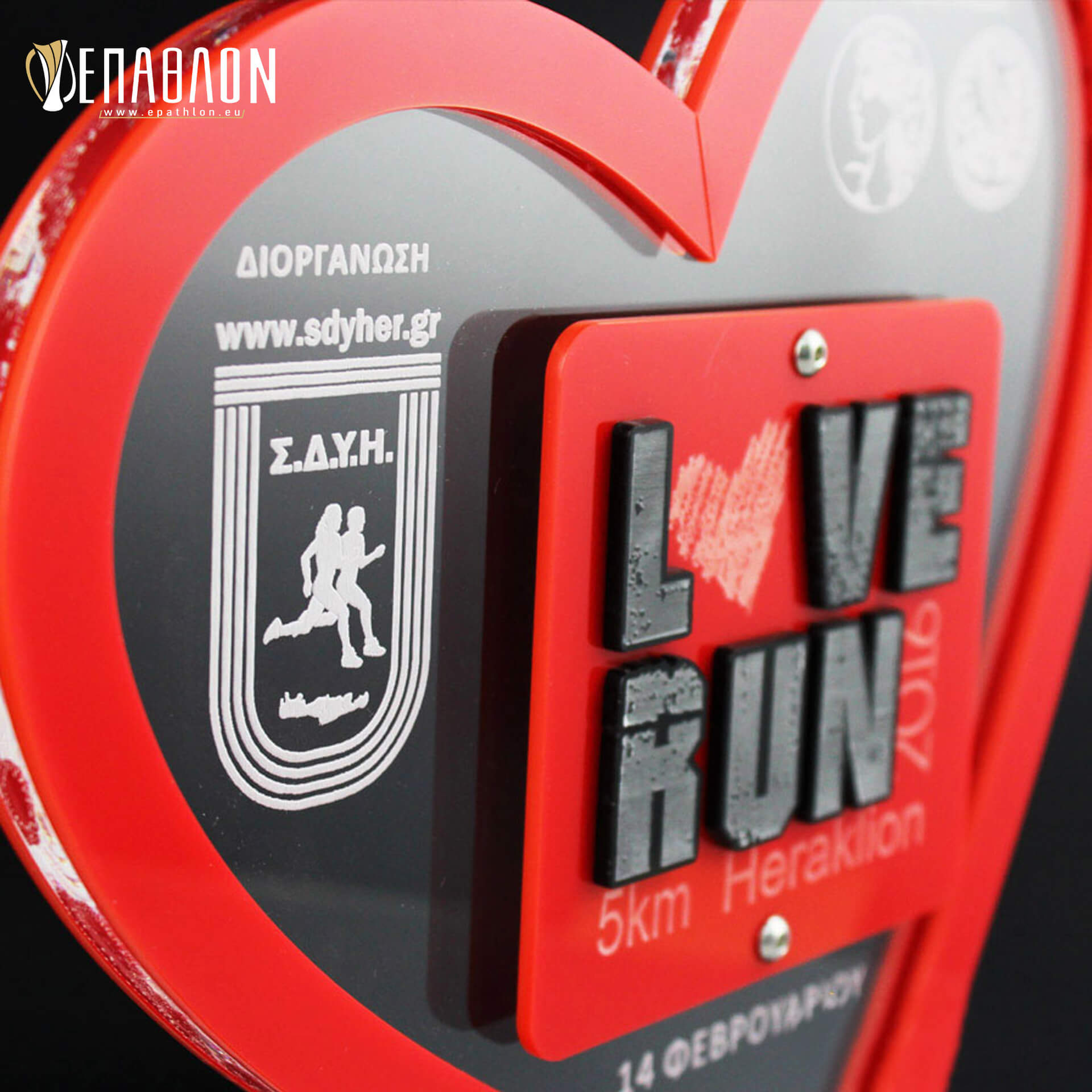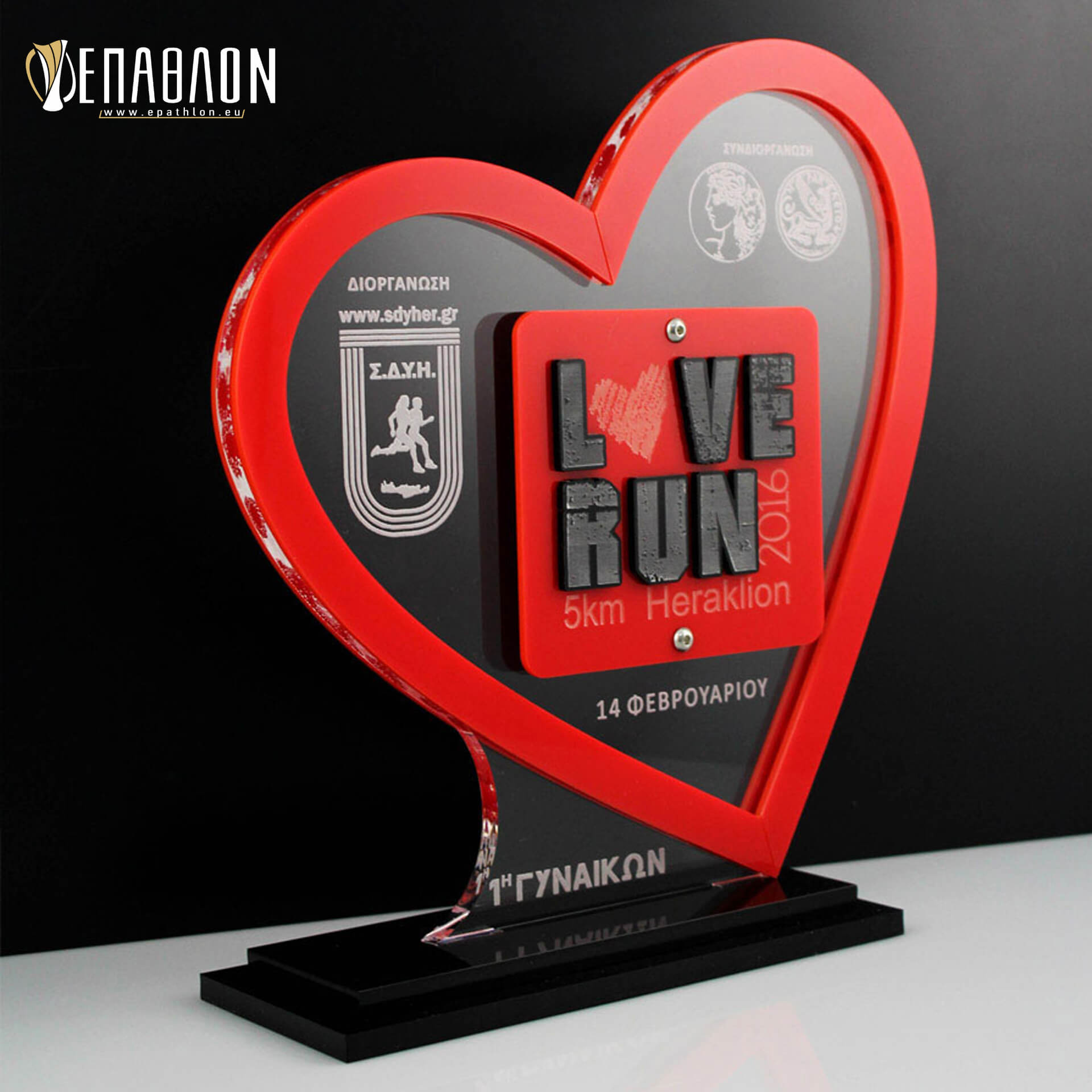 Custom έπαθλο βασισμένο στο λογότυπο της διοργάνωσης “LOVE RUN”
