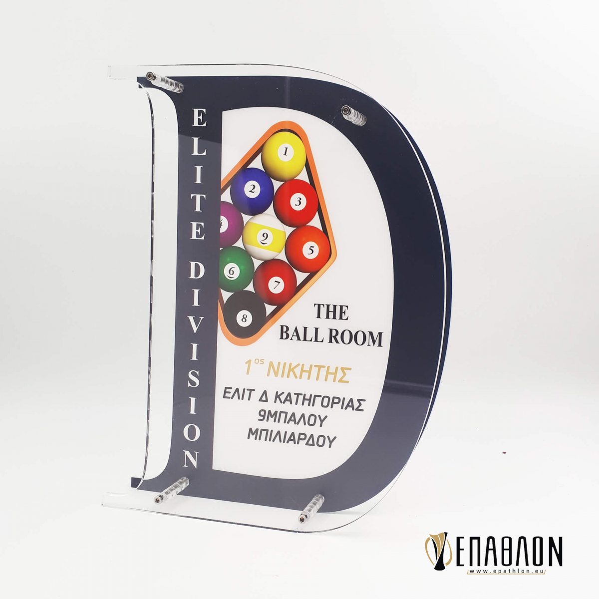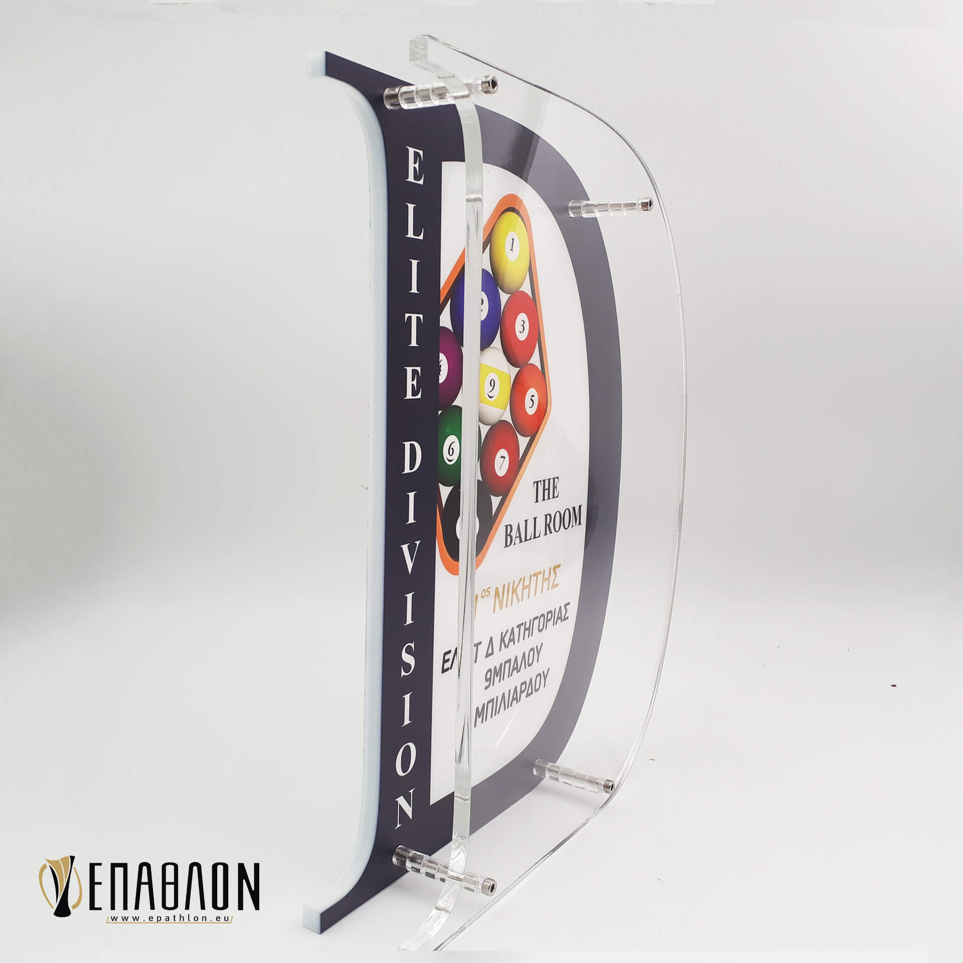 Custom έπαθλο για το ELITE DIVISION • Υλικά: Plexiglass γαλακτερό πάχους 10mm με έγχρωμη εκτύπωση επάνω στο υλικό, διάφανο Plexiglass πάχους 10mm