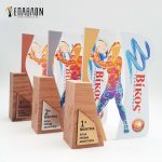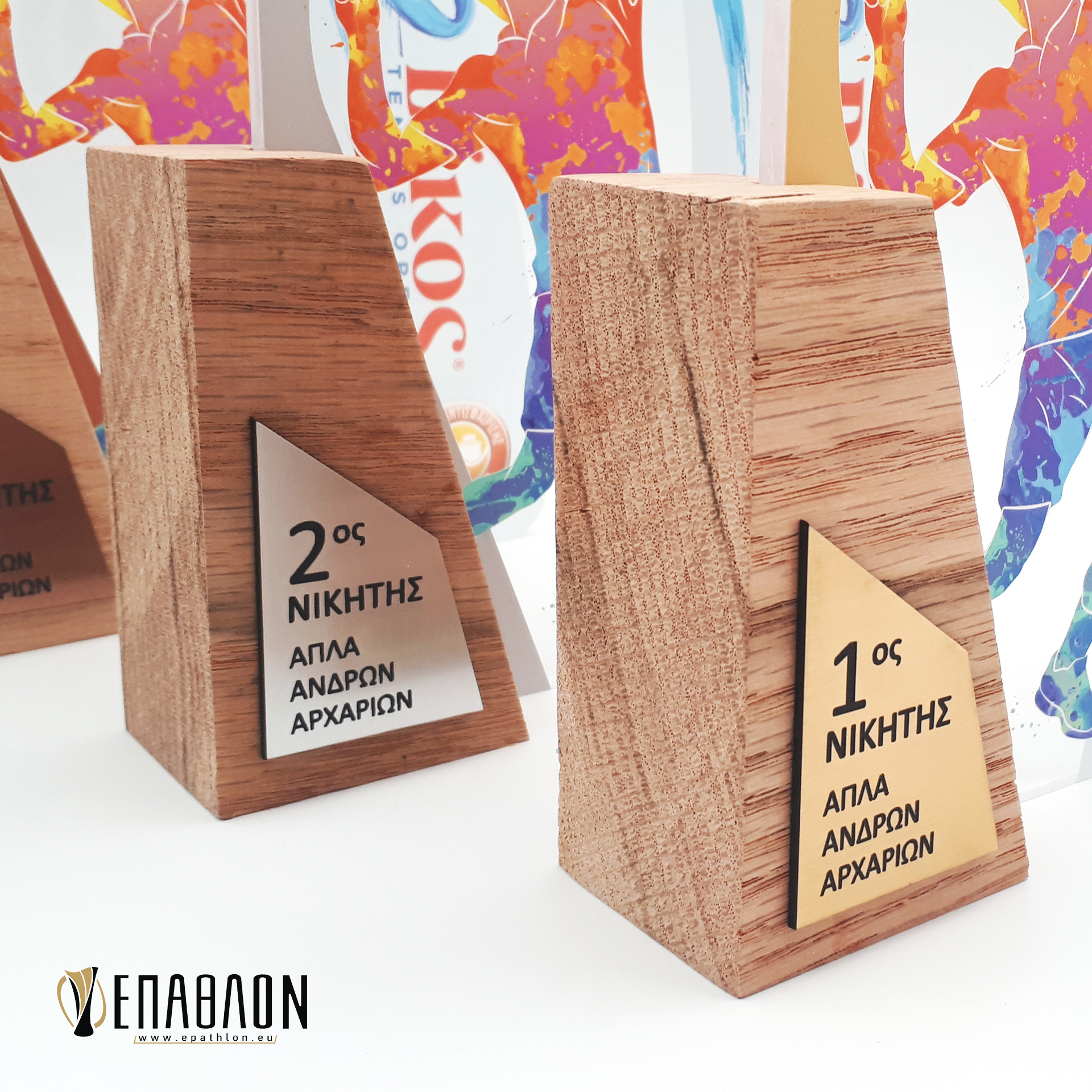 • Υλικά: Ξύλο μασίφ πάχους 5cm, ακρυλικό διάφανο πάχους 6mm με έγχρωμη εκτύπωση επάνω στο ακρυλικό, Darwin ταμπελάκι (χρυσό-ασημί-χάλκινο) με χάραξη