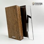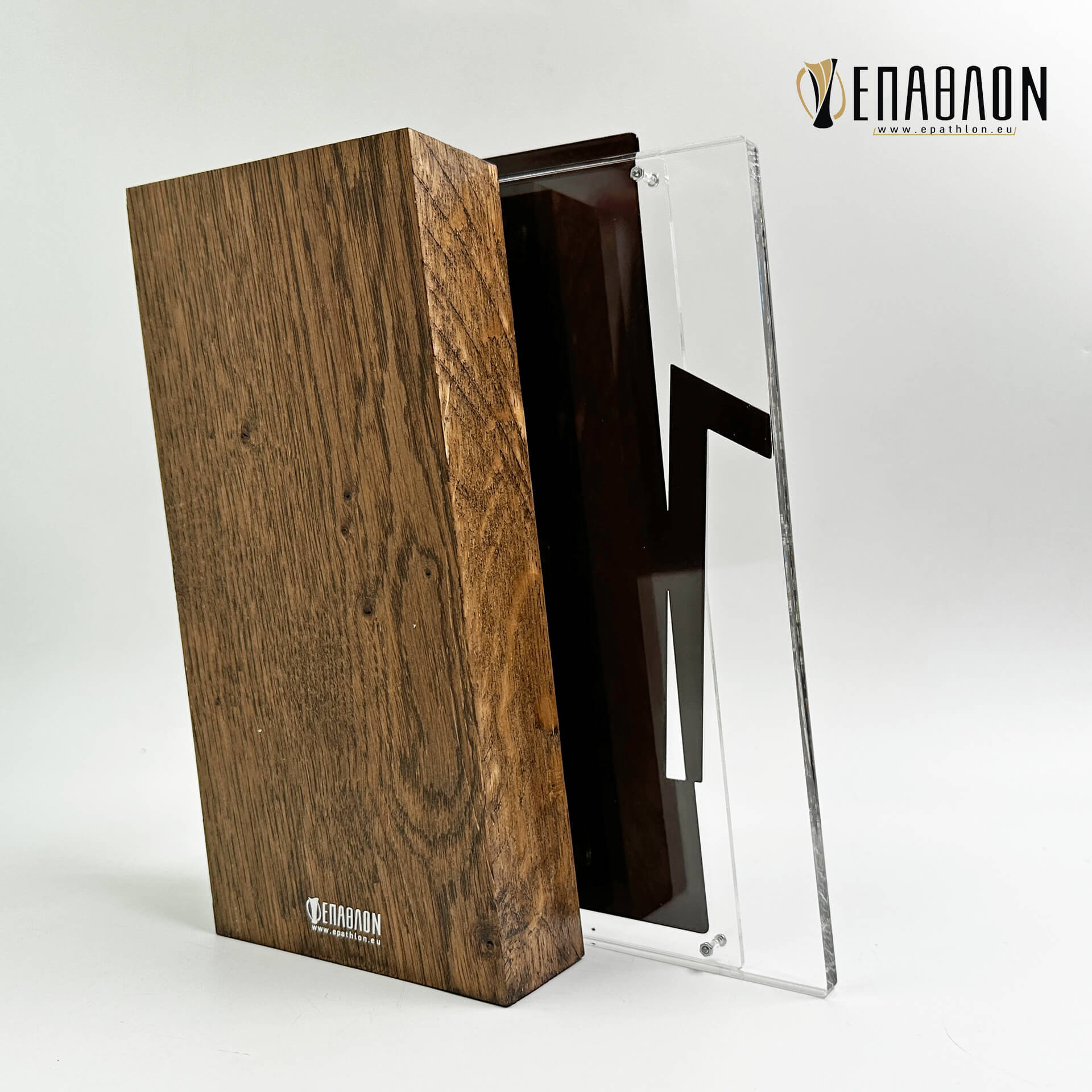 • Υλικά: Μασίφ ξύλο πάχους 4,5cm επεξεργασμένο & βαμμένο με χρώμα και λάδι εμποτισμού, μέταλλο πάχους 1mm κομμένο με laser και βαμμένο, διάφανο plexiglass πάχους 10mm & διάφανο plexiglass πάχους 3mm με εκτύπωση επάνω στο υλικό