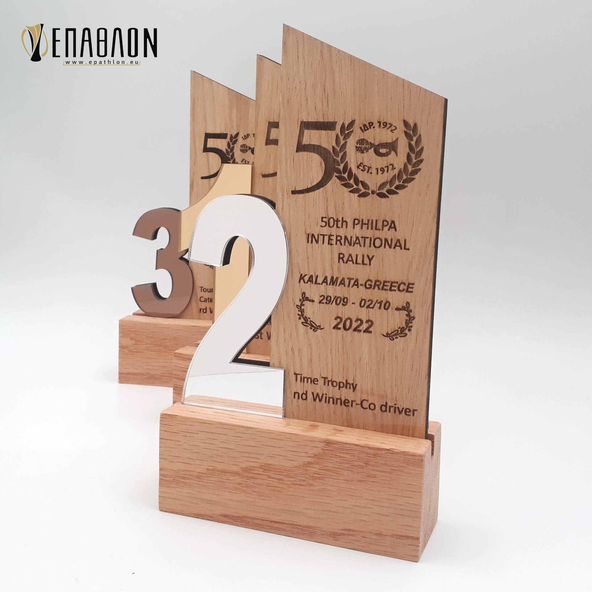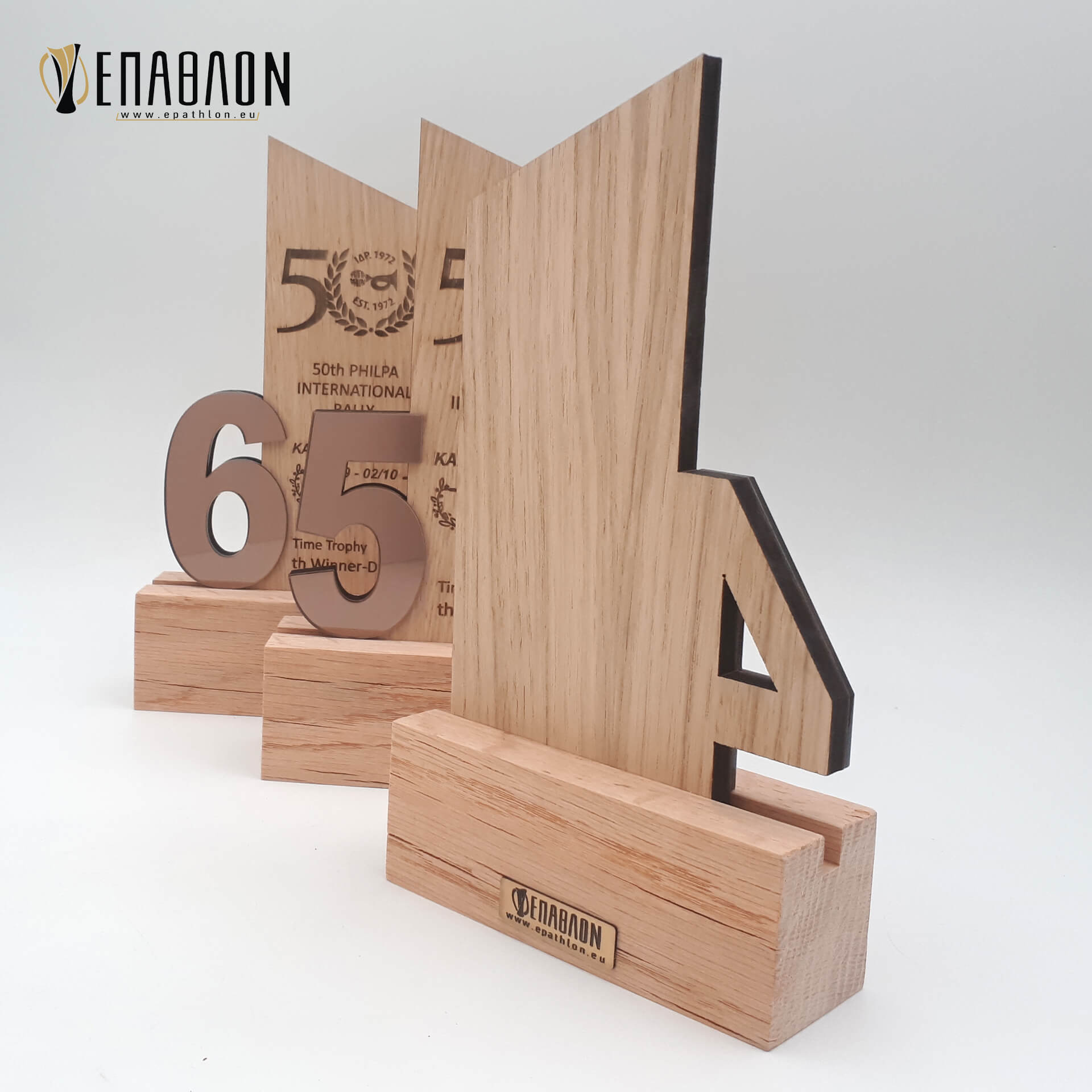 Custom ξύλινο έπαθλο με συνδυασμό ξύλων και ακρυλικού καθρέπτη