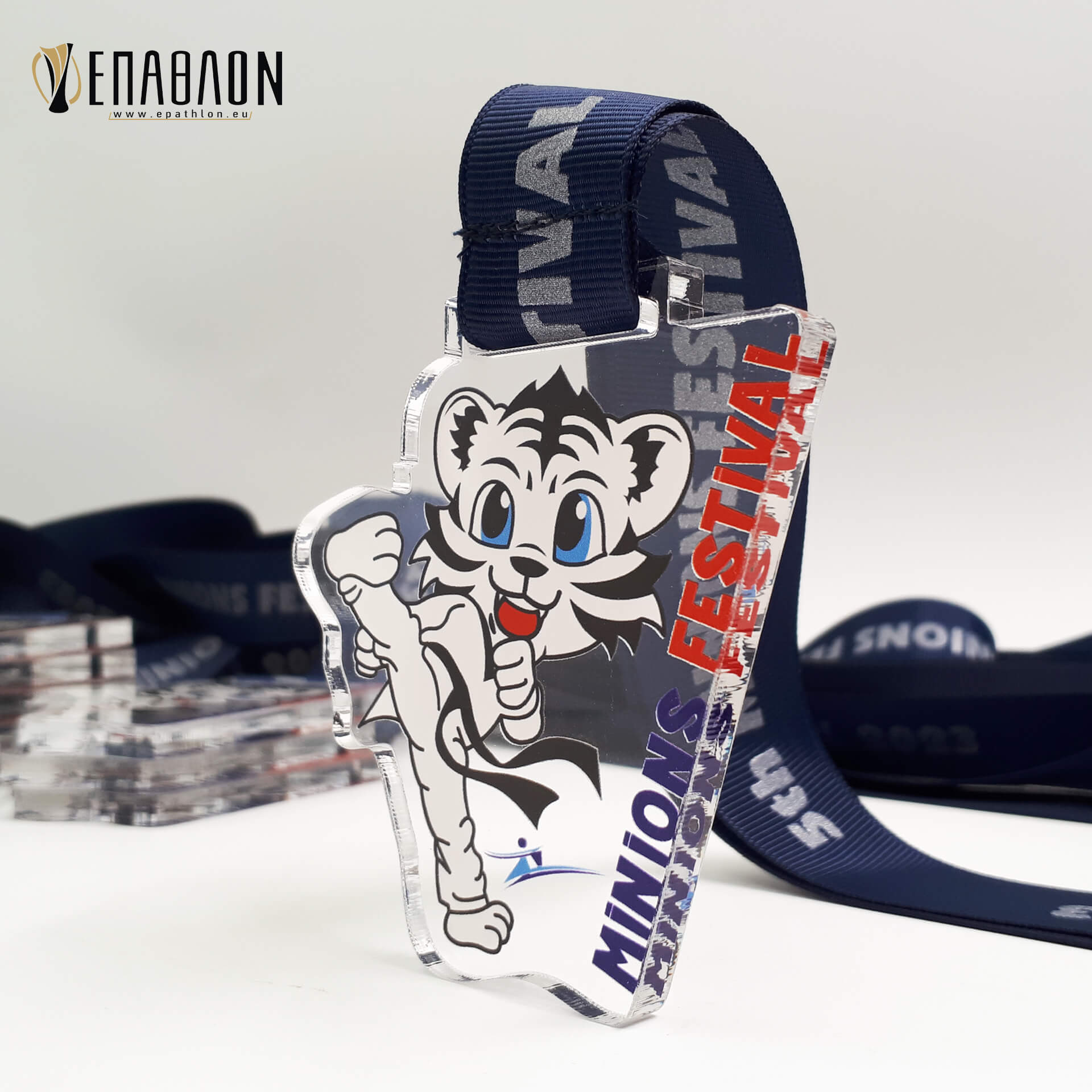 Custom μετάλλιο ακρυλικό με ψηφιακή εκτύπωση • Υλικά: Πλάτη από ακρυλικό διάφανο πάχους 6mm με έγχρωμη εκτύπωση επάνω στο ακρυλικό. Κορδέλα φάρδους 20mm