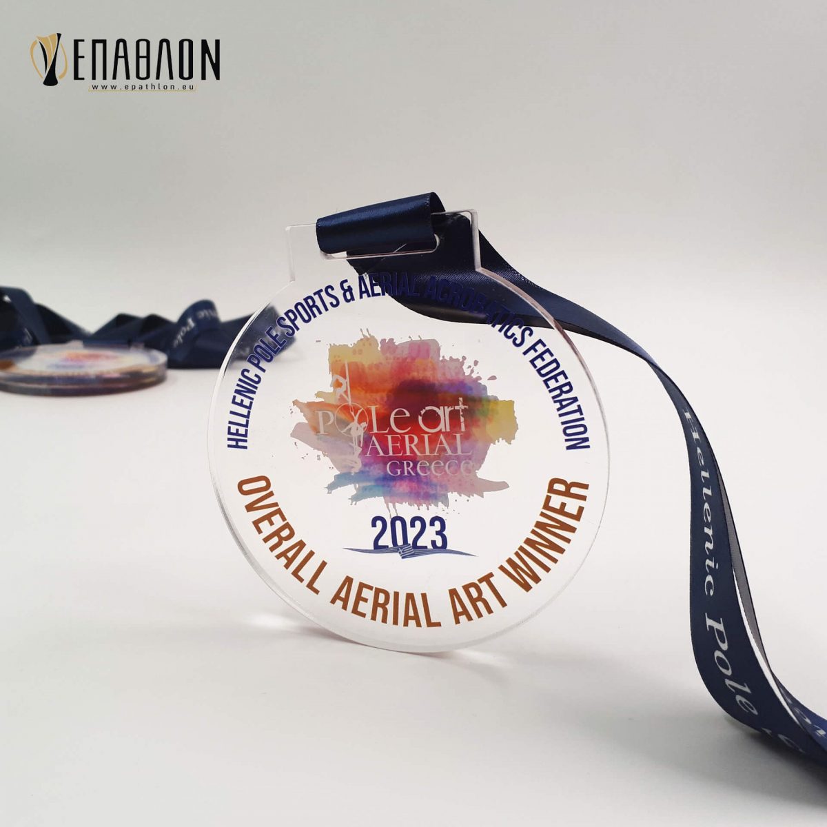 Custom μετάλλιο ακρυλικό με ψηφιακή εκτύπωση • Υλικά: Πλάτη από ακρυλικό διάφανο πάχους 6mm με έγχρωμη εκτύπωση επάνω στο ακρυλικό. Κορδέλα φάρδους 20mm