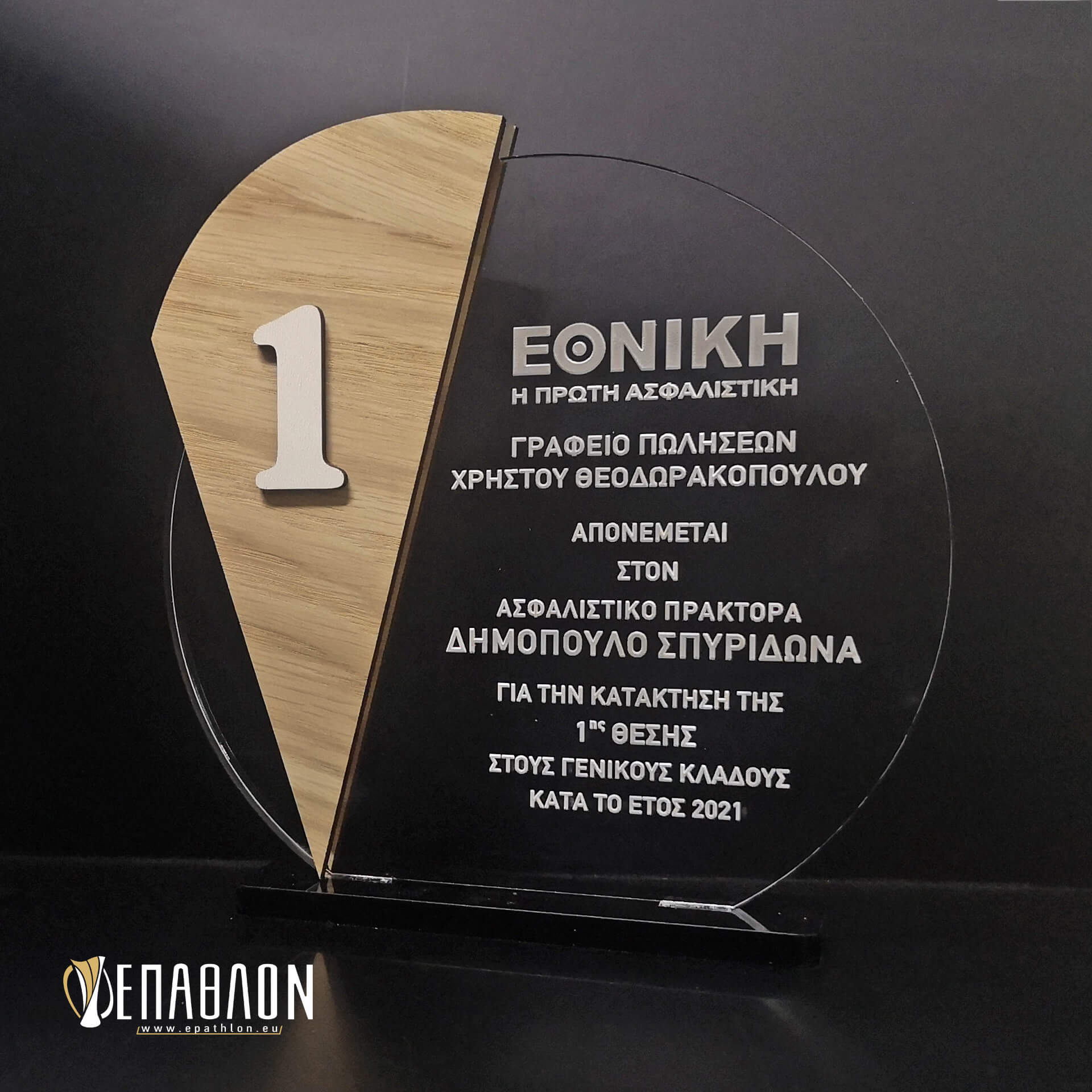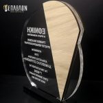 Custom βραβείο για τους συνεργάτες της ΕΘΝΙΚΗΣ ΑΦΑΛΙΣΤΙΚΗΣ • Υλικά: Διάφανο ακρυλικό πάχους 6mm με χάραξη, ξύλο πάχους 4mm, λευκό ξύλο πάχους 3mm, βάση από μαύρο ακρυλικό πάχους 5mm