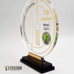 • Υλικά: Plexiglass διάφανο πάχους 8mm με εκτύπωση επάνω στο υλικό, διακοσμητικό από plexiglass καθρέπτη (χρυσό-ασημί-μπρονζέ), βάσεις από μαύρο Plexiglass πάχους 8mm