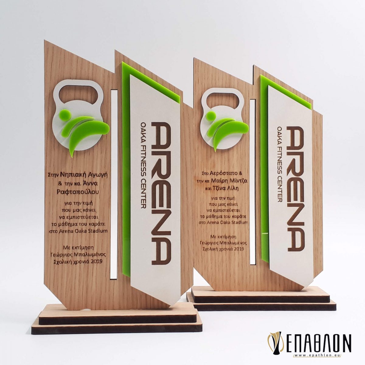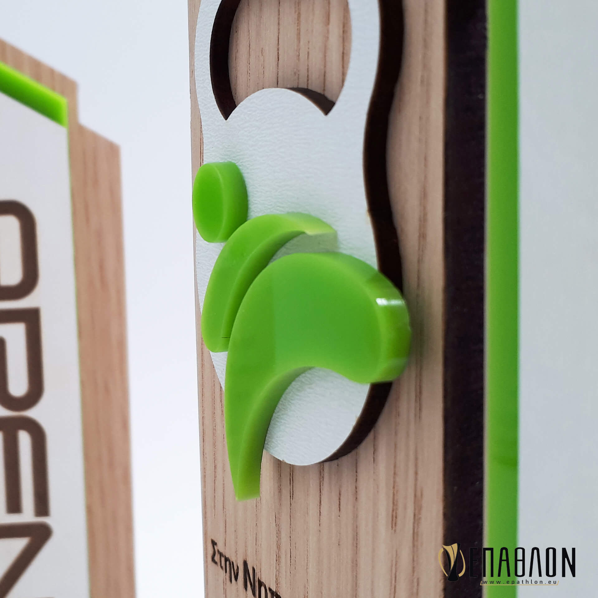 Custom αναμνηστική πλακέτα από το συνδυασμό ξύλων και ακρυλικού • Υλικά: Ξύλο πάχους 9mm με χάραξη, λευκό ξύλο πάχους 3mm με χάραξη, λαχανί ακρυλικό πάχους 3mm, βάσεις από ξύλο