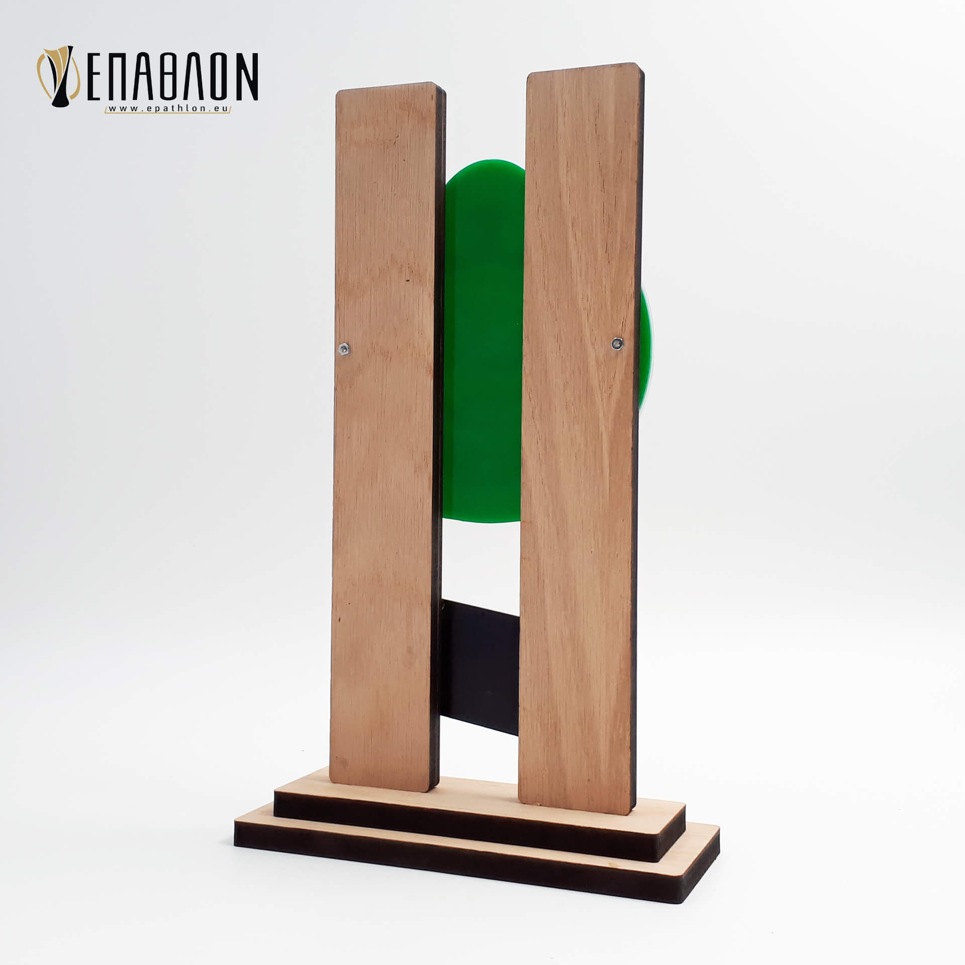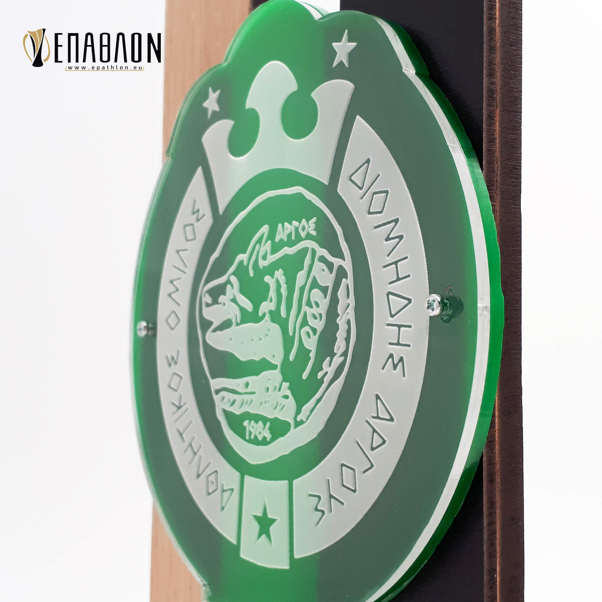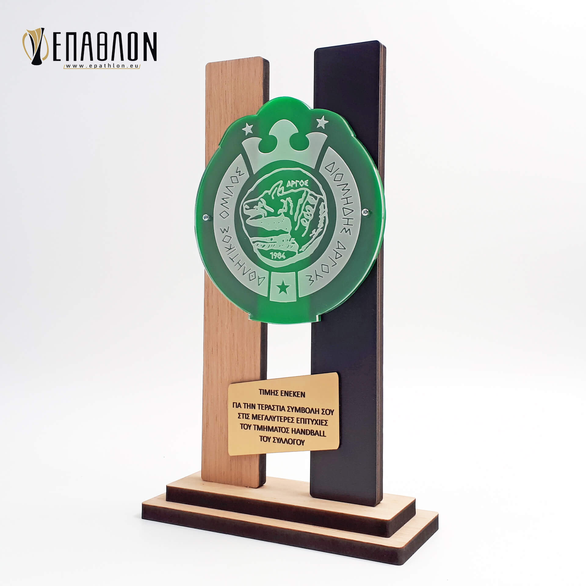 • Υλικά: Ξύλο πάχους 9mm και 7mm, μαύρο ξύλο πάχους 3mm, λογότυπο από πράσινο ακρυλικό πάχους 3mm και διάφανο πάχους 3mm με χάραξη, darwin χρυσό με χάραξη πάχους 1,5mm