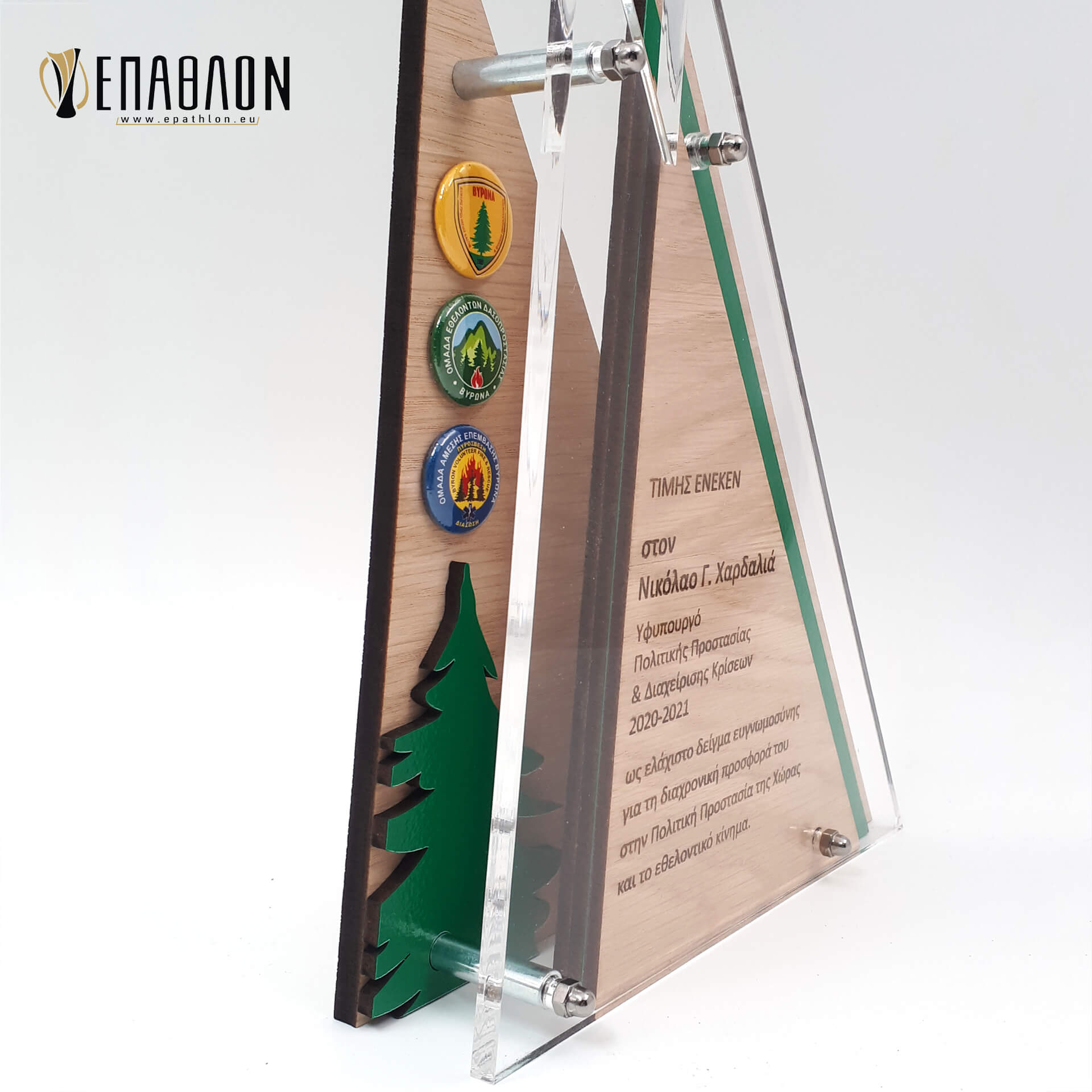 Custom αναμνηστική πλακέτα από το συνδυασμό ξύλων και ακρυλικού