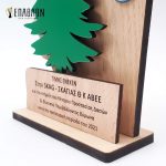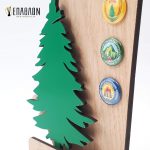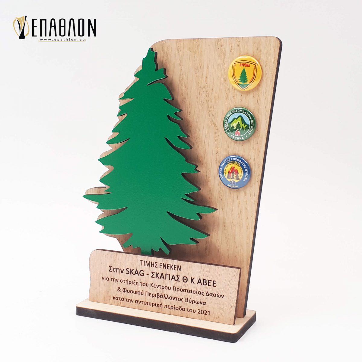 Custom αναμνηστική πλακέτα από το συνδυασμό ξύλων • Υλικά: Ξύλο πάχους 7mm, ξύλο κόντρα πλακέ οκουμέ πάχους 4mm με χάραξη, χρωματισμένο ξύλο πάχους 4mm, λογότυπα σε κονκάρδες