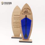 Custom αναμνηστική πλακέτα από το συνδυασμό ξύλου και ακρυλικού • Διάσταση: 25x9cm • Υλικά:Ξύλο πάχους 7mm με χάραξη, μπλε και μαύρο ακρυλικό πάχους 3mm