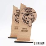 Custom αναμνηστική πλακέτα από ξύλο βασισμένη στο λογότυπο της διοργάνωσης • Υλικά: Ξύλο πάχους 7mm με χάραξη, ξύλο πάχους 4mm με χάραξη, βάση από ξύλο