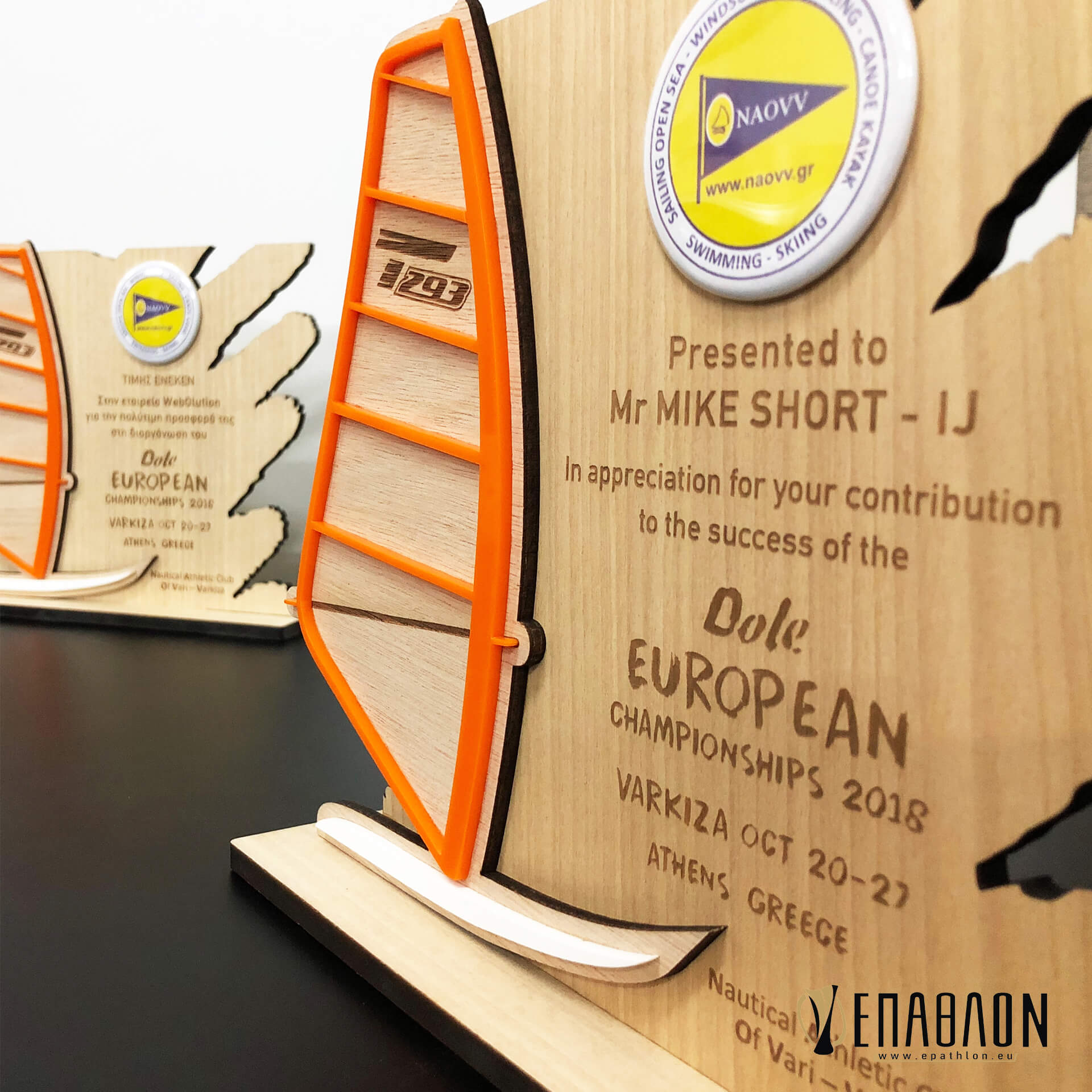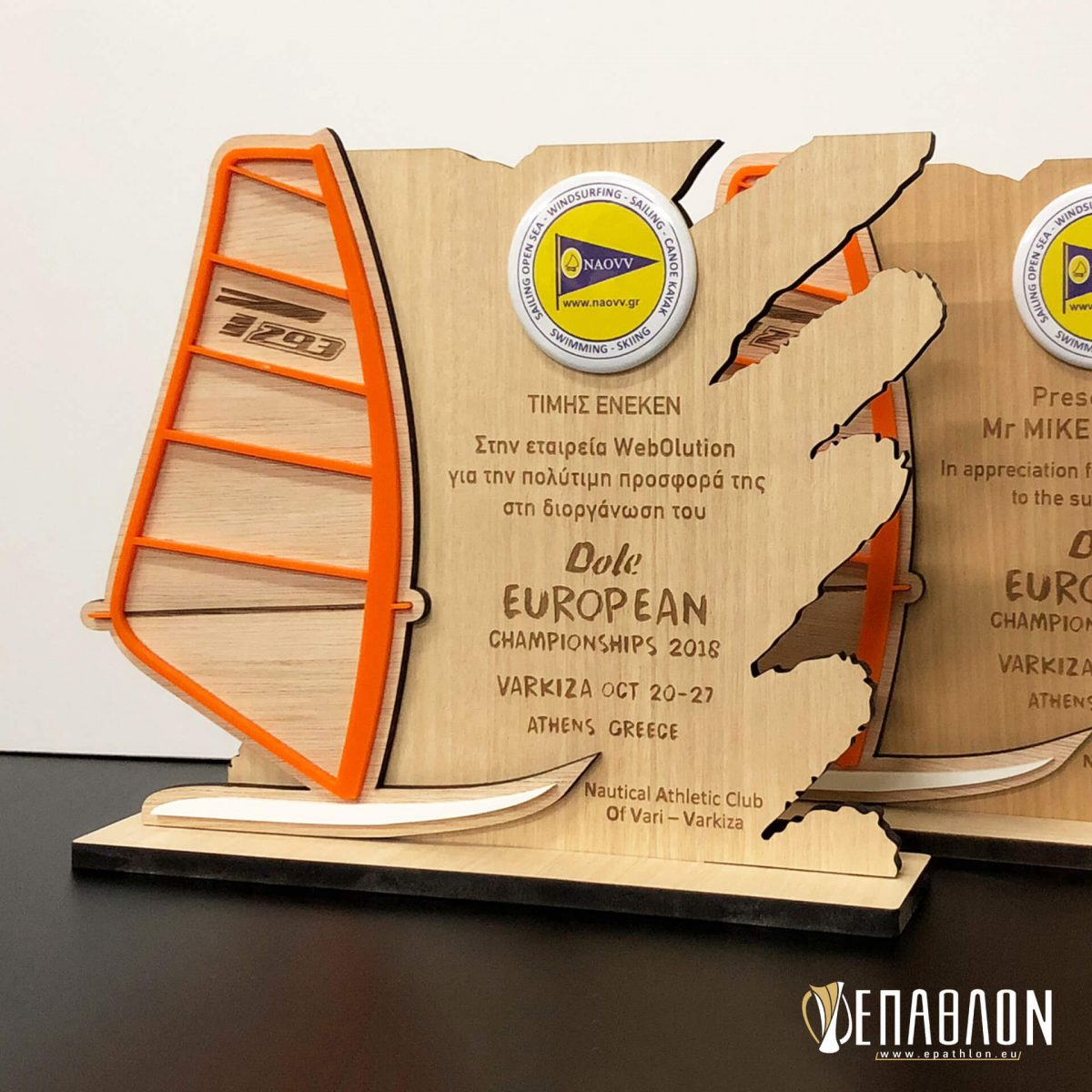 Custom αναμνηστική πλακέτα από ξύλο με λεπτομέρειες ακρυλικού βασισμένη στο λογότυπο και το άθλημα της διοργάνωσης