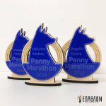 Custom αναμνηστική πλακέτα από το συνδυασμό ξύλου και ακρυλικού • Υλικά: Ξύλο πάχους 7mm με χάραξη, μπλε ακρυλικό πάχους 3mm με χάραξη, βάση από ξύλο