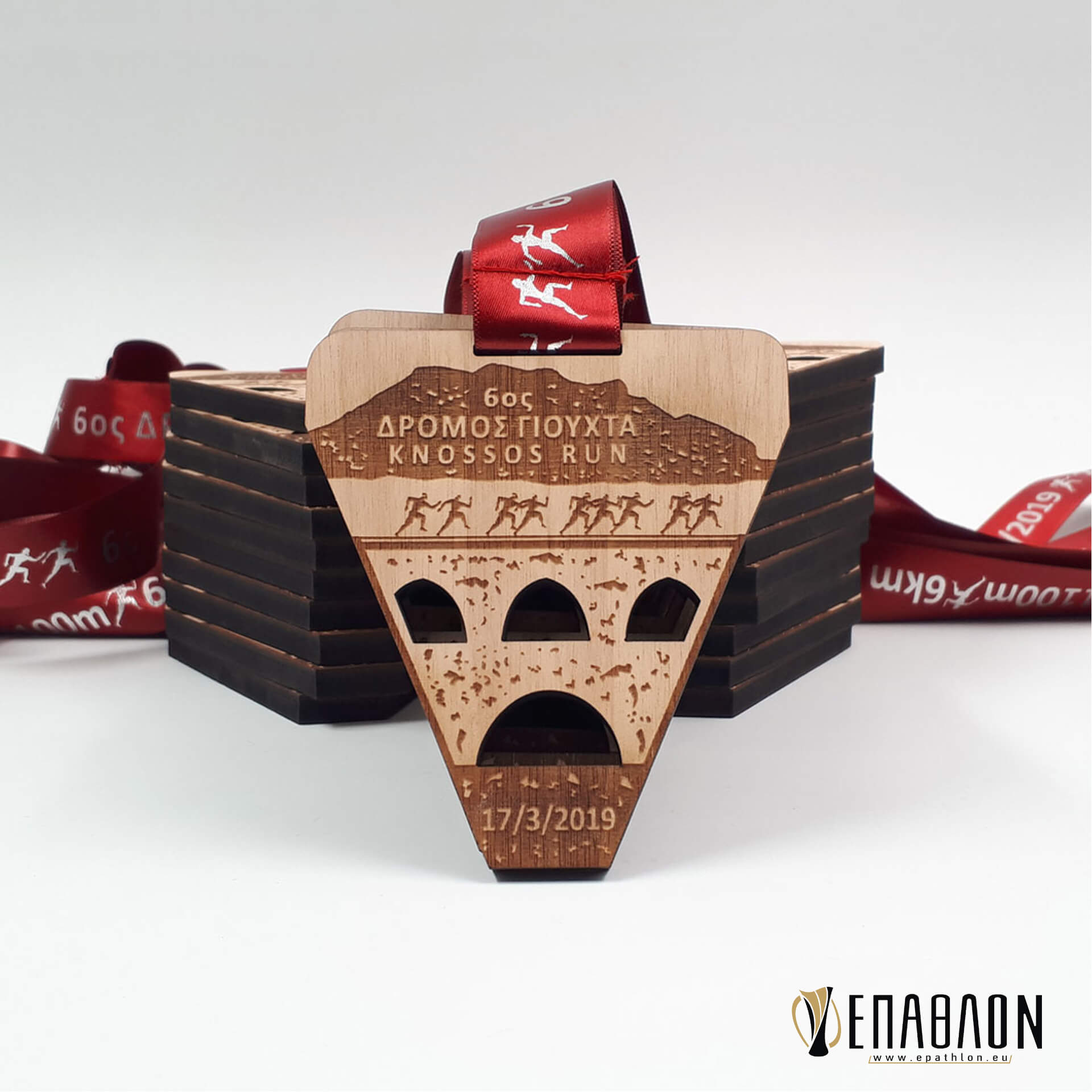 Custom ξύλινο μετάλλιο με χάραξη • Υλικά: Ξύλο πάχους 7mm με χάραξη, κορδέλα φάρδους 25mm με μονόχρωμη εκτύπωση