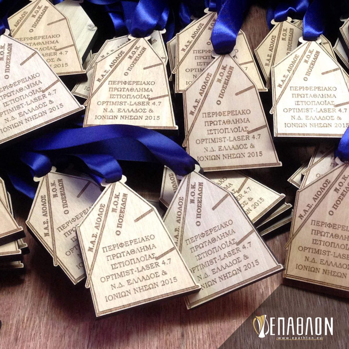 Custom μετάλλιο από ξύλο με χάραξη • Υλικά: Ξύλο πάχους 7mm με χάραξη, κορδέλα φάρδους 15mm
