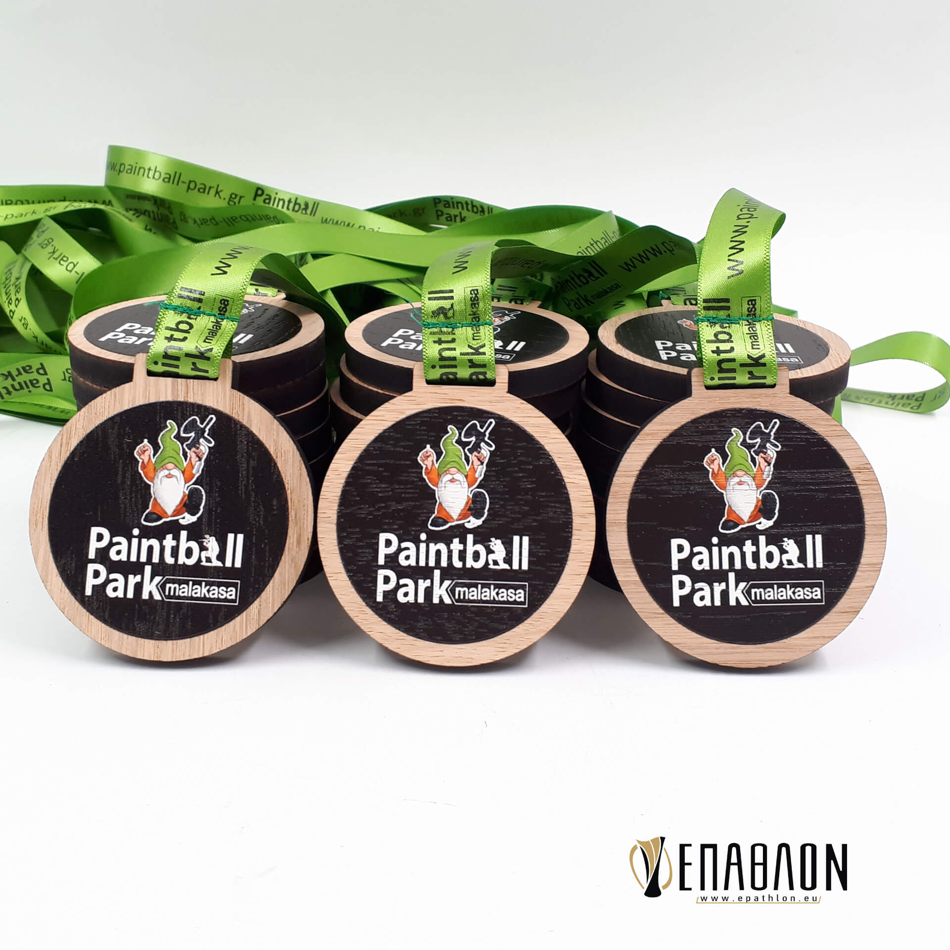 Custom ξύλινο μετάλλιο με έγχρωμη εκτύπωση • Υλικά: Ξύλο πάχους 7mm με εκτύπωση επάνω στο ξύλο, κορδέλα με μονόχρωμη εκτύπωση