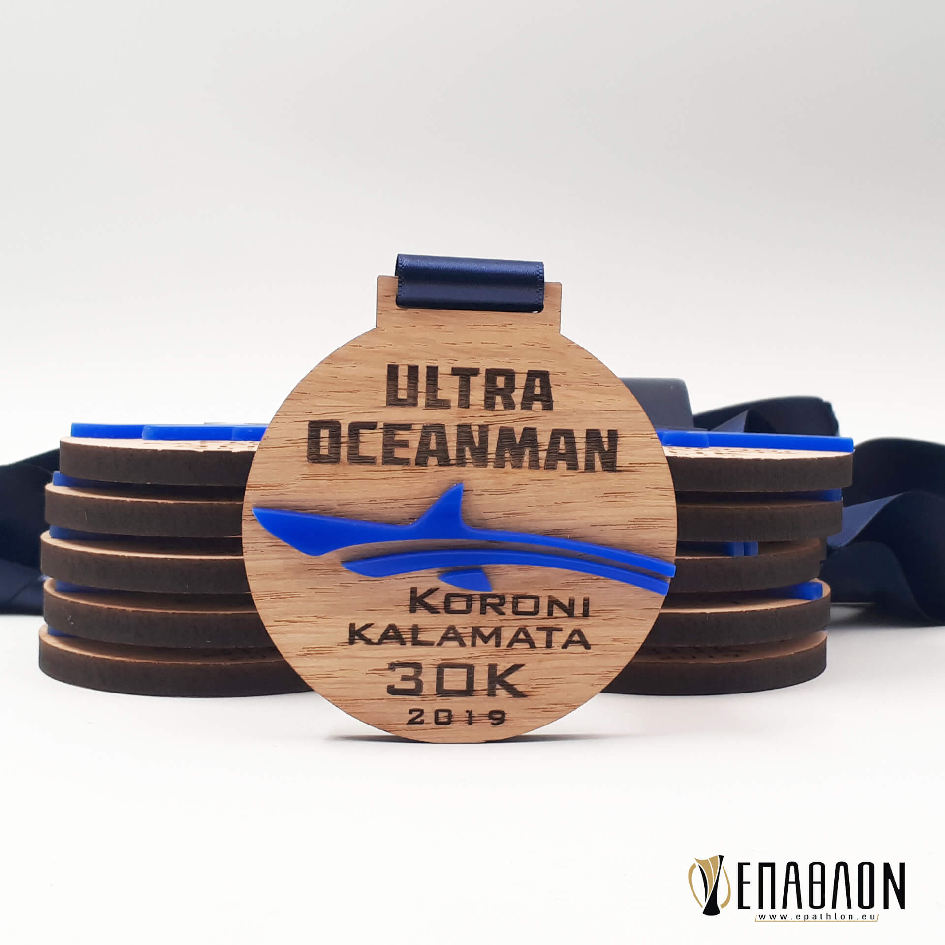 Custom ξύλινο μετάλλιο με συνδυασμό ξύλου και ακρυλικού • Υλικά: Ξύλο πάχους 7mm με χάραξη, μπλε ακρυλικό πάχους 3mm κορδέλα φάρδους 25mm