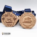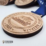 Custom ξύλινο μετάλλιο με χάραξη σε 2 όψεις • Υλικά: Ξύλο πάχους 7mm, Κορδέλα με μονόχρωμη εκτύπωση