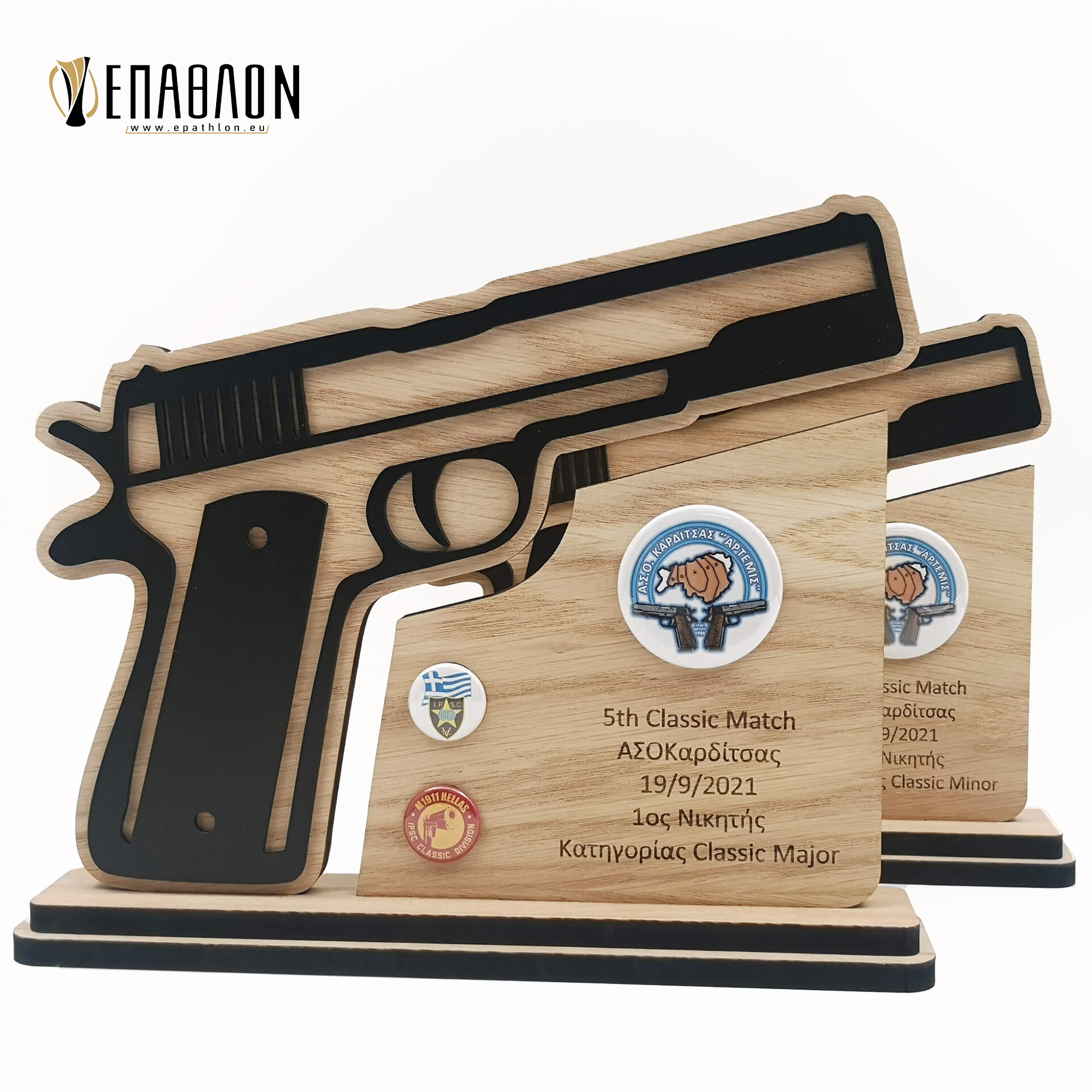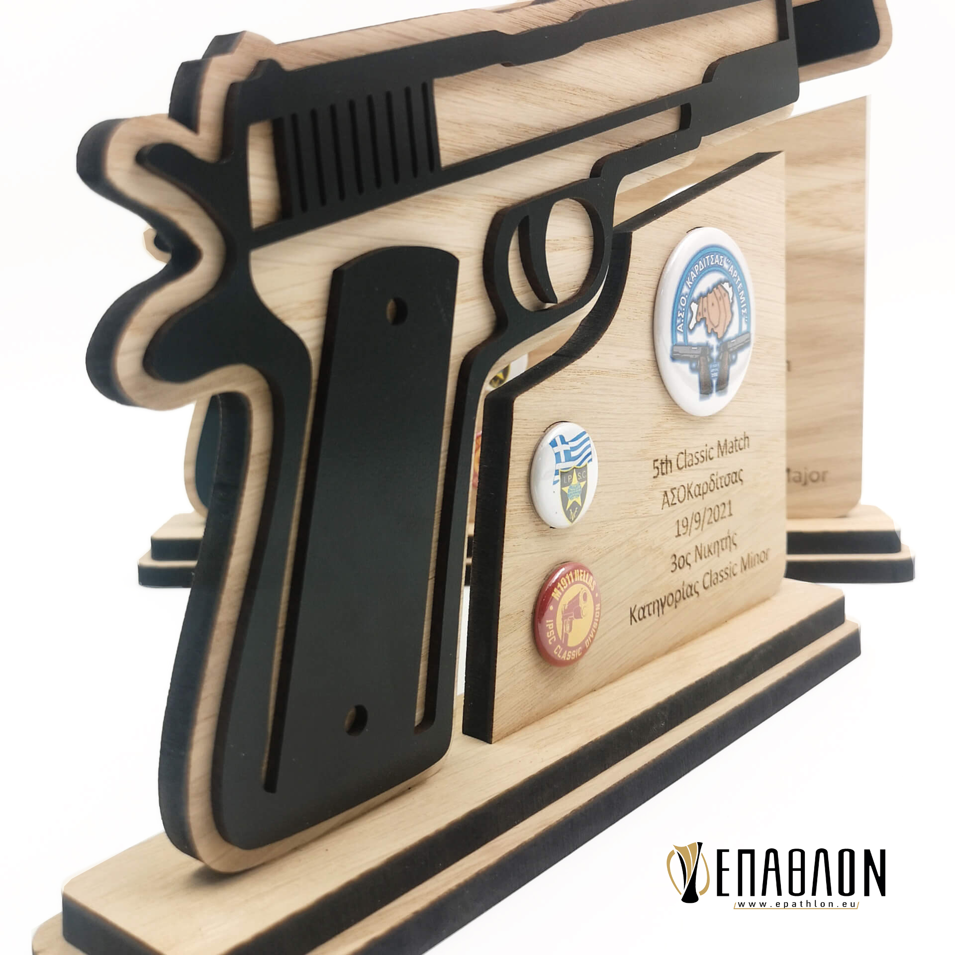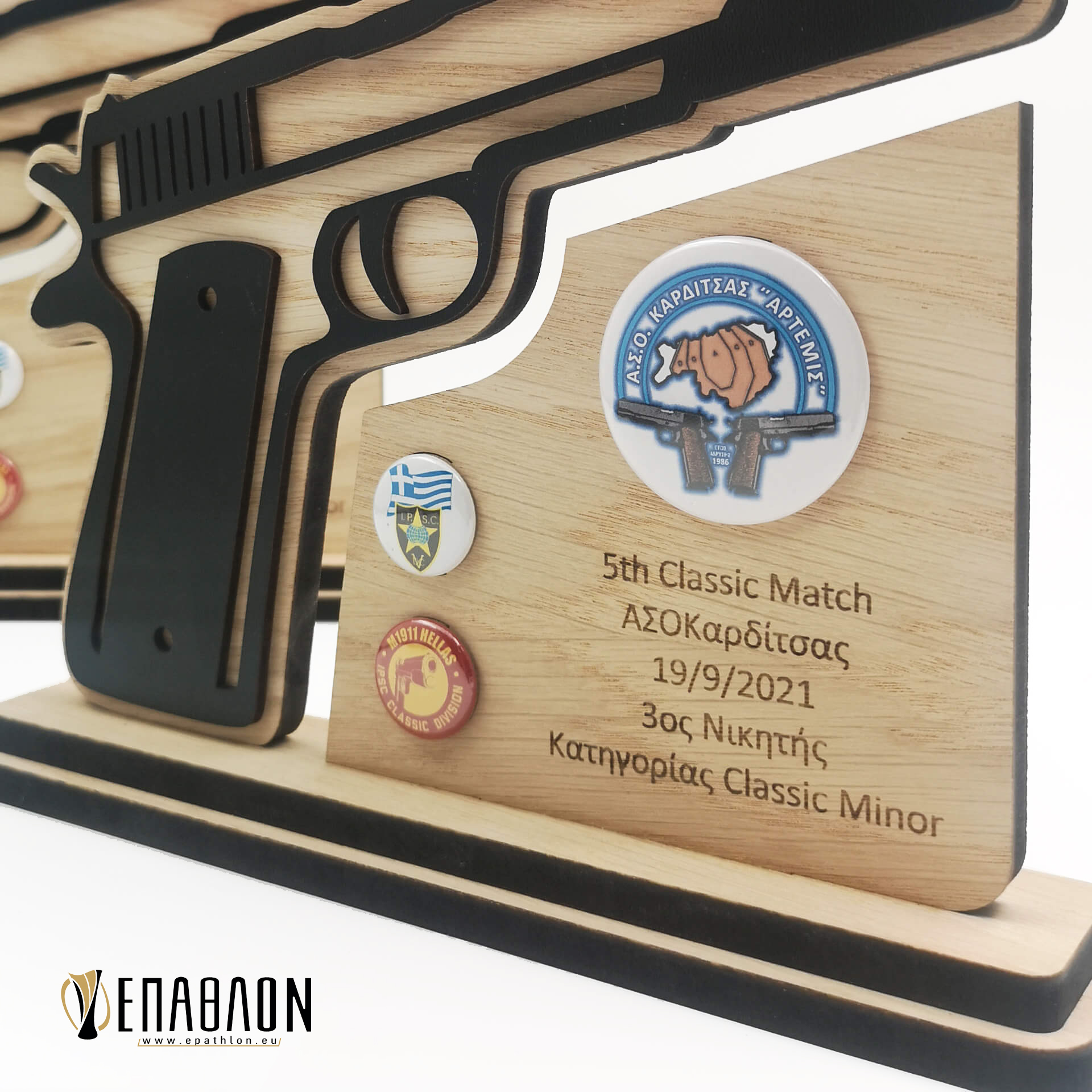 Έπαθλο custom από ξύλο με θέμα ΣΚΟΠΟΒΟΛΗ