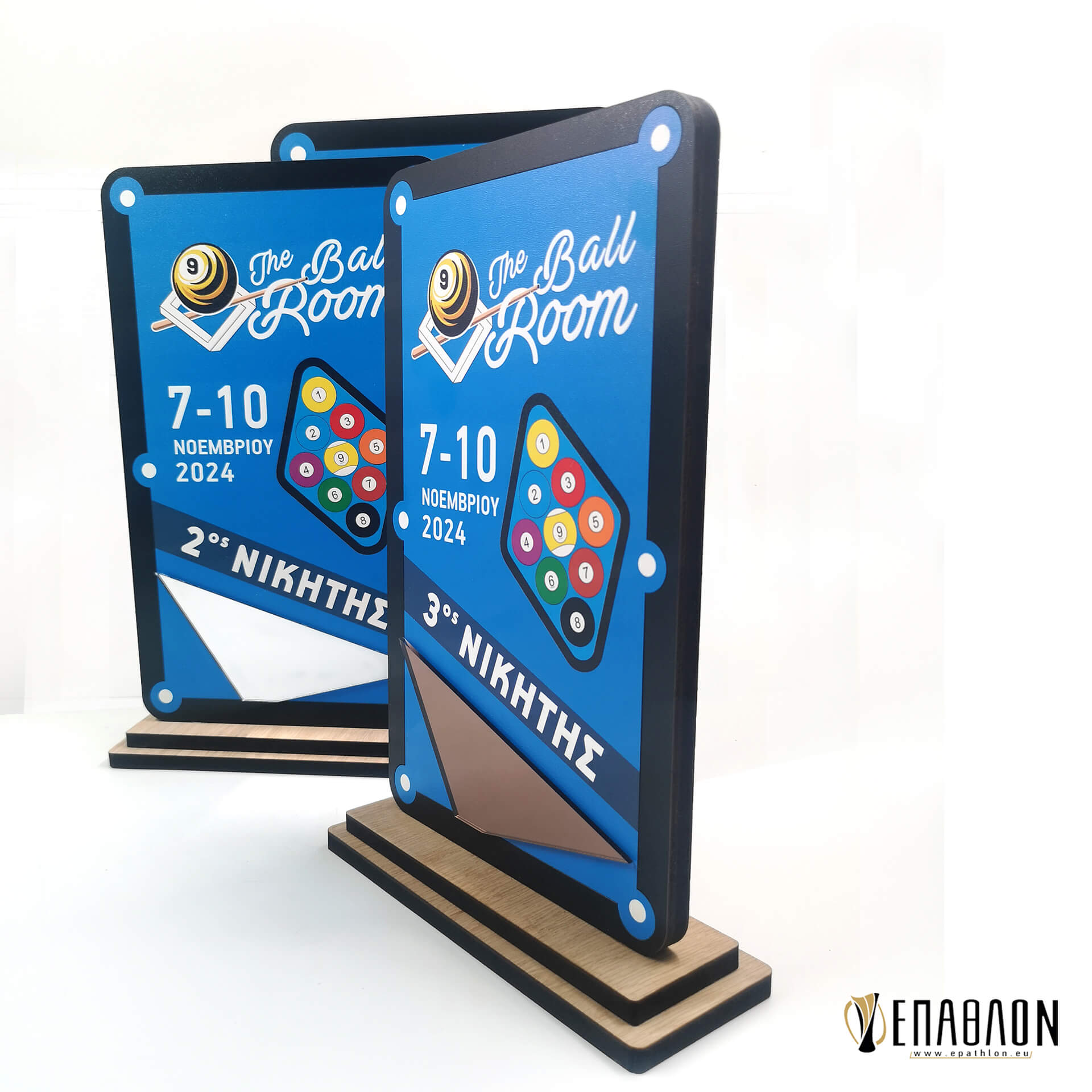 Υλικά: Ξύλο πάχους 9mm & ξύλο λευκό & μαύρο πάχους 3mm με UV ψηφιακή εκτύπωση επάνω στο υλικό, plexiglass καθρέπτης (χρυσό-αημί-bronze) βάση από ξύλα πάχους 9mm
