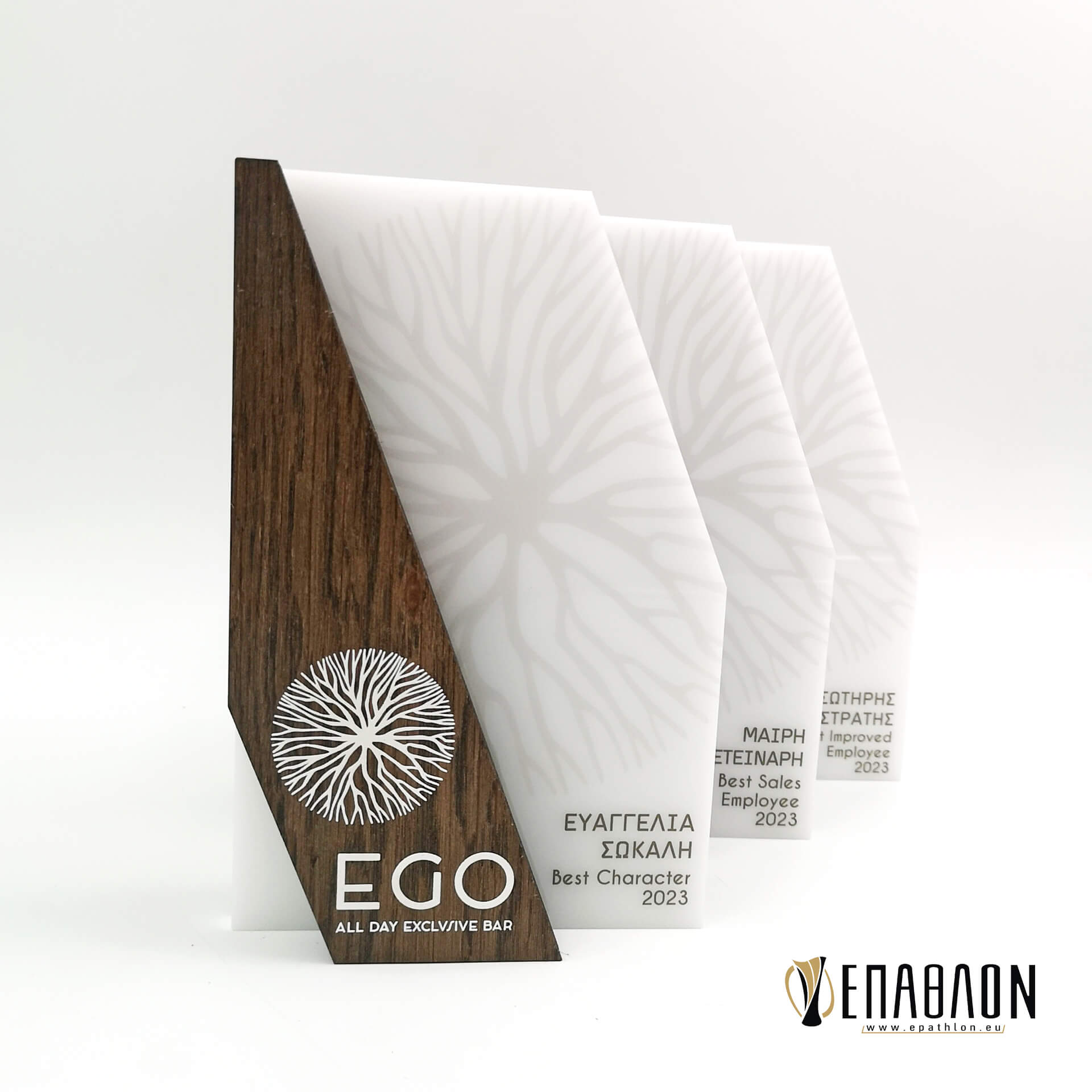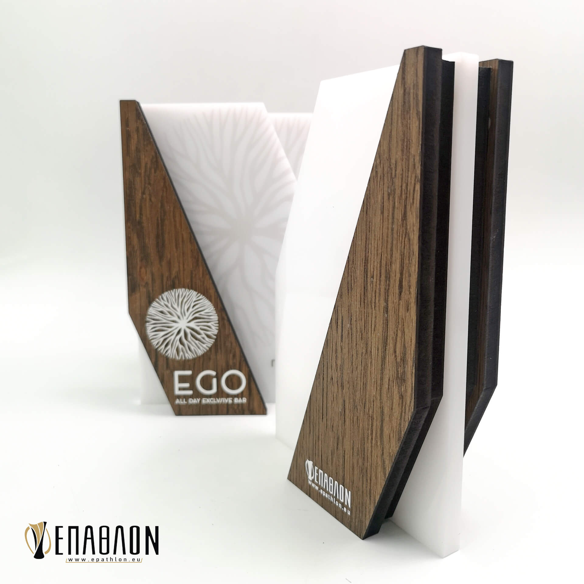 Επιχειρηματικό Βραβείο από plexiglass και ξύλο με έγχρωμη εκτύπωση επάνω στα υλικά