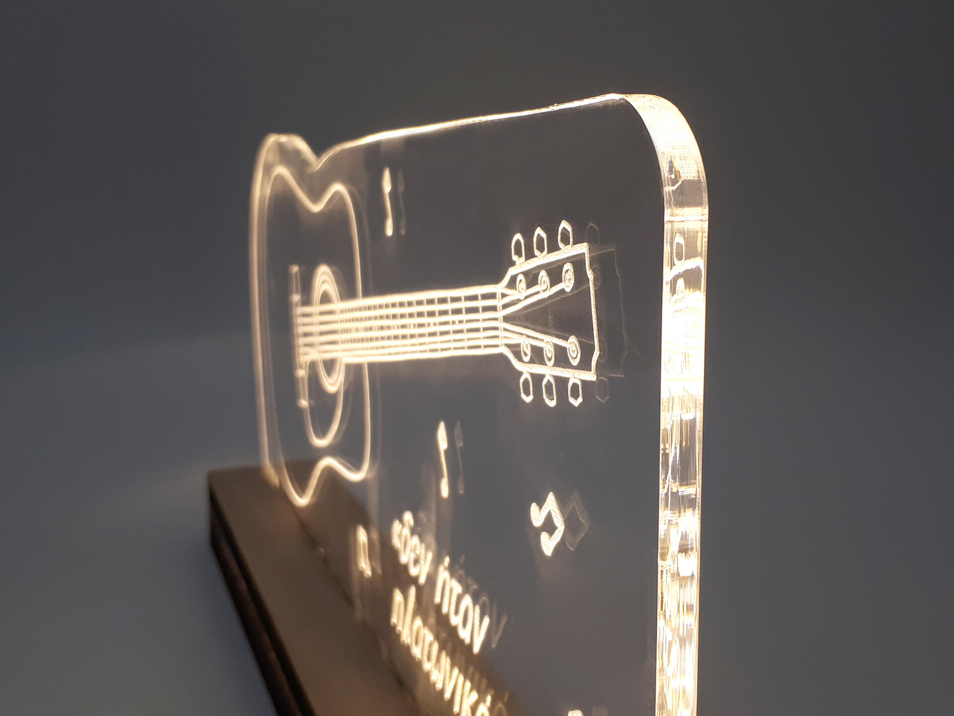 Φωτιστικό Led από ακρυλικό και ξύλινη χειροποίητη βάση δικής μας πρωτοποριακής σχεδίασης και κατασκευής.
