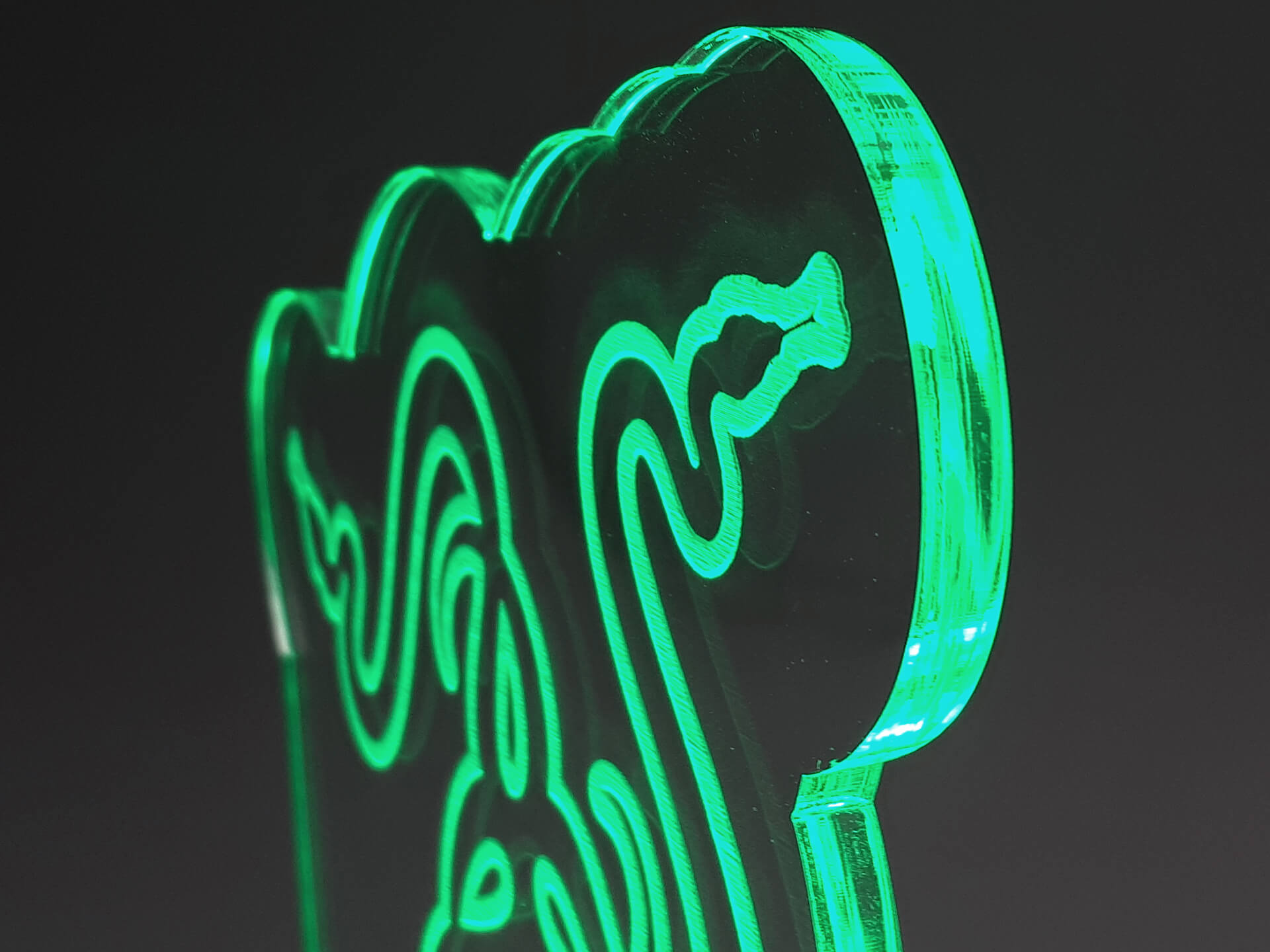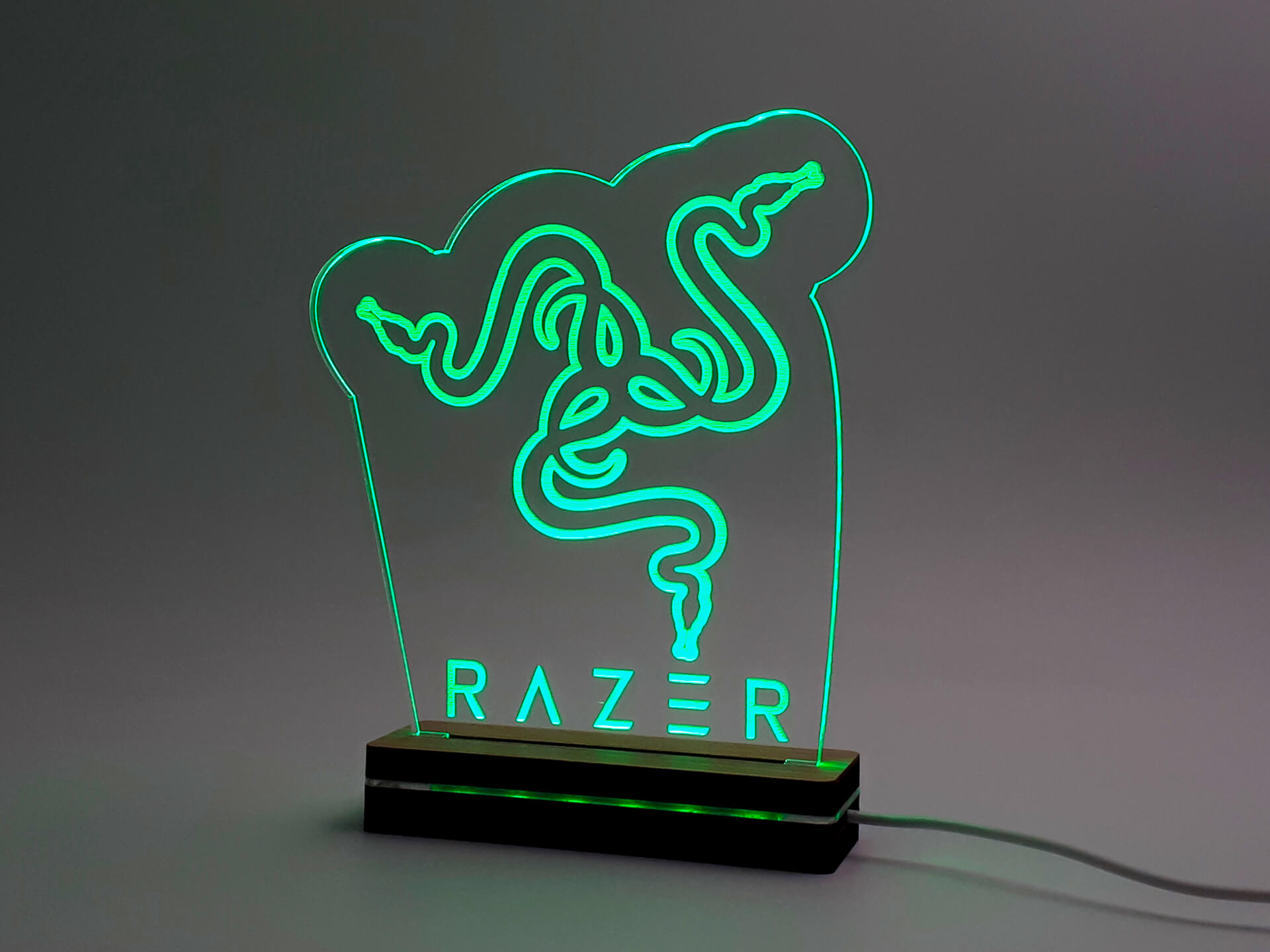 • Υλικά: Led πράσινου χρώματος, Ακρυλικό διάφανο πάχους 6mm, Χειροποίητη βάση από ξύλο και ακρυλικό