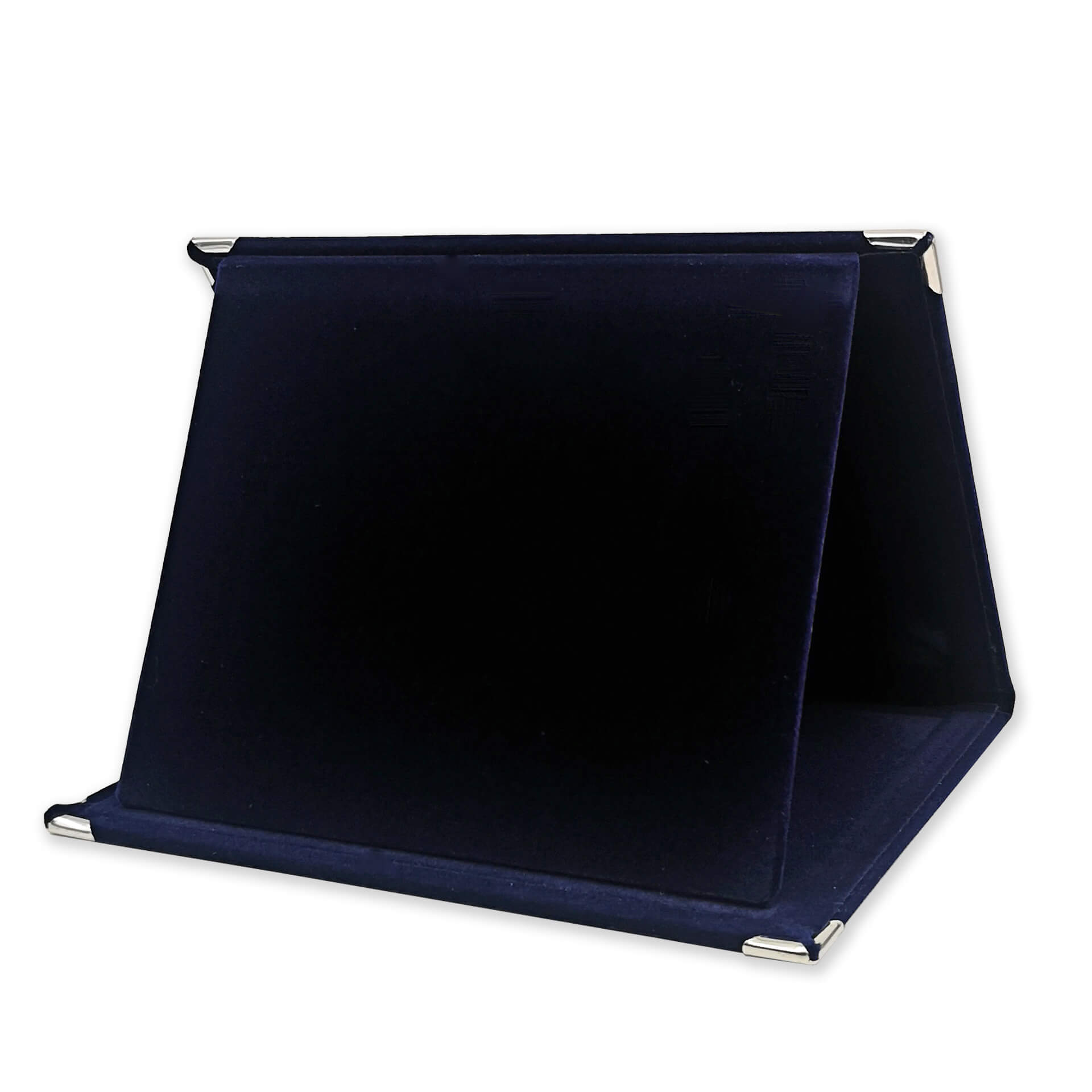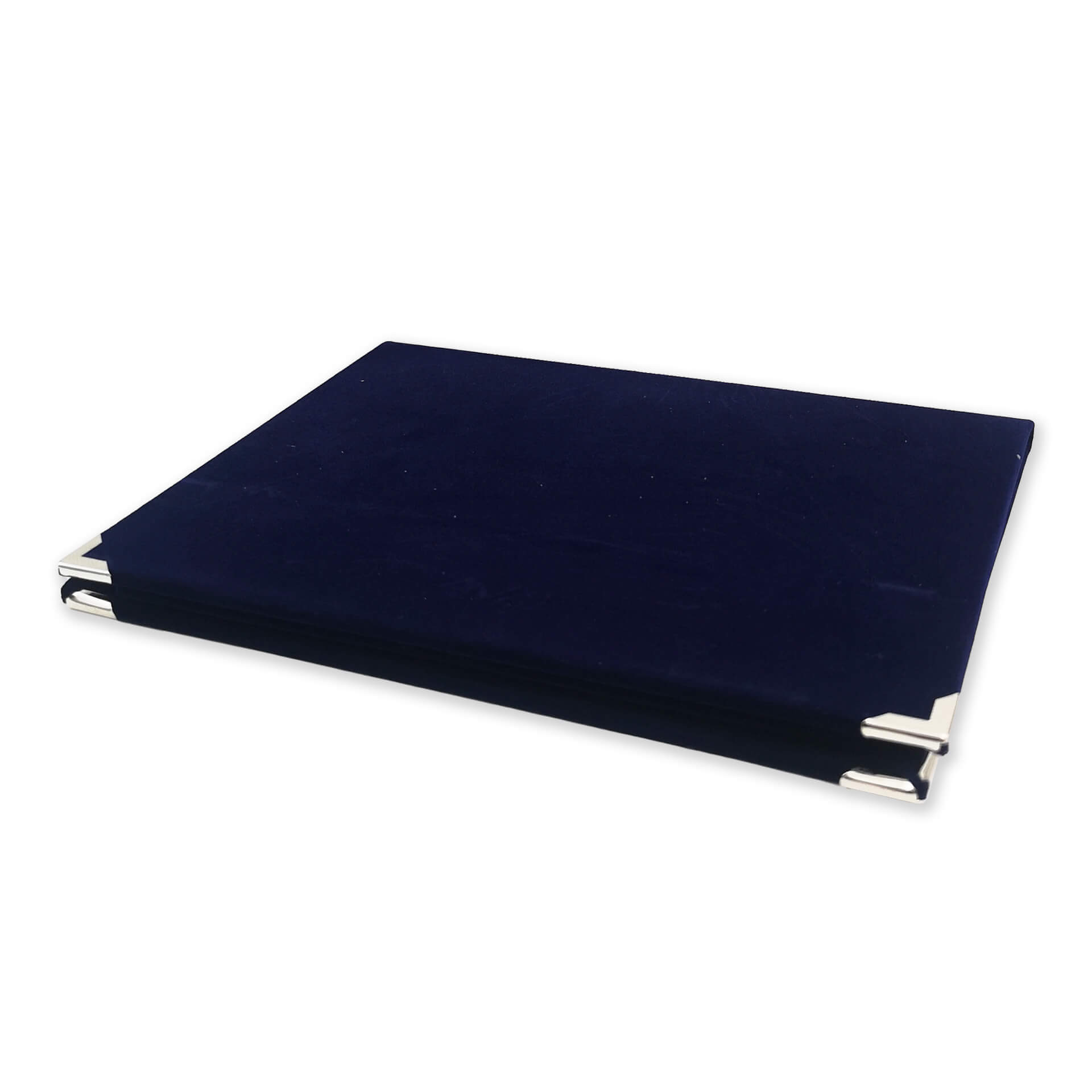 Βελούδινη κασετίνα μπλε χρώματος (οριζόντια) με μεταλλικές λεπτομέρειες.