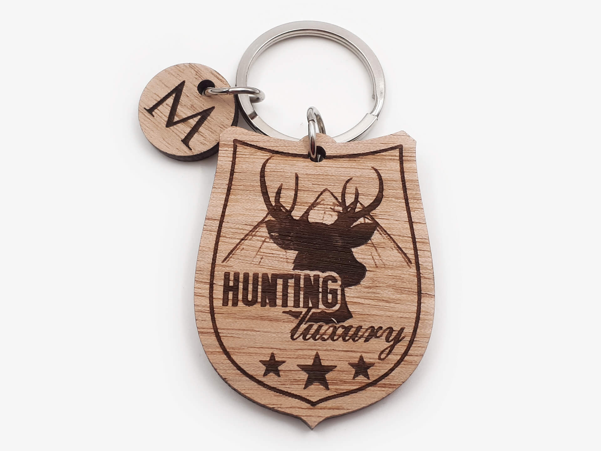 Πρωτότυπο ξύλινο μπρελόκ με χάραξη το κυνήγι του ελαφιού ένα μοναδικό δώρο για τους λάτρεις του κυνηγιού.