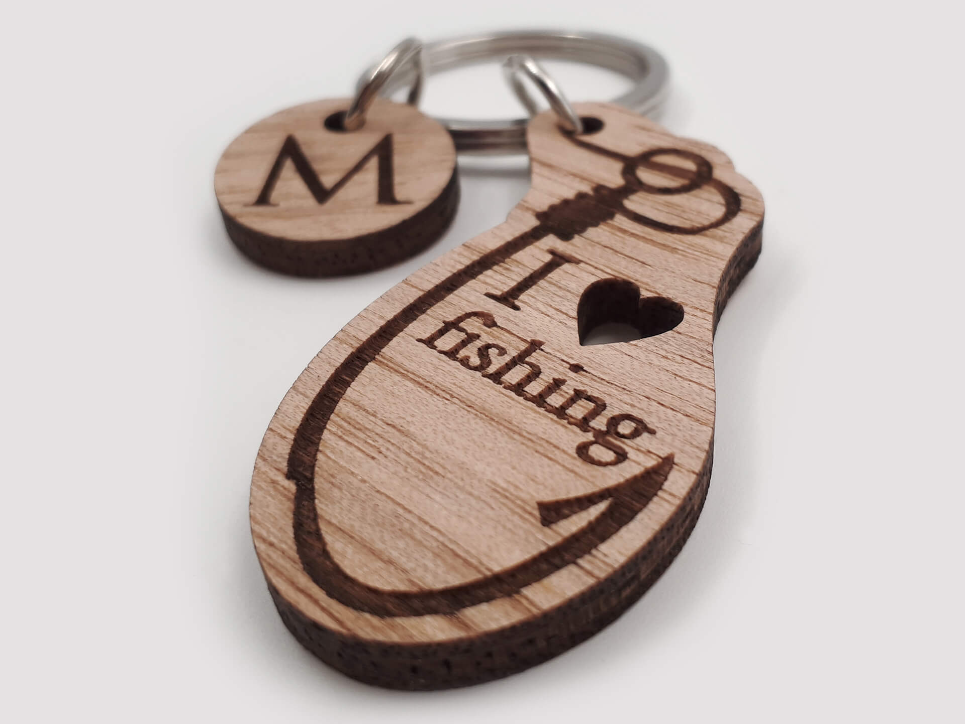Πρωτότυπο ξύλινο μπρελόκ "I Love Fishing" για τους λάτρεις του είδους.