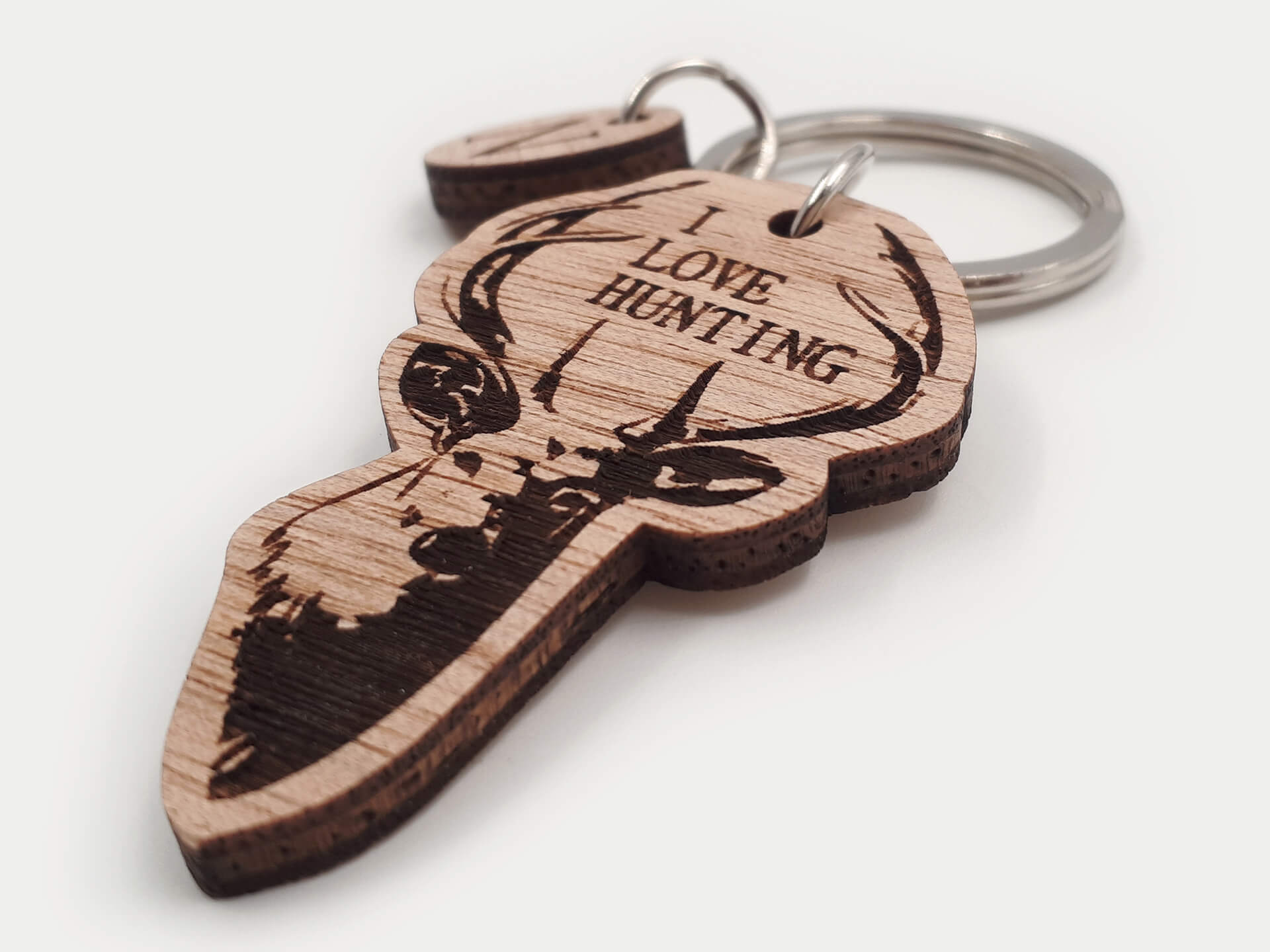 Πρωτότυπο ξύλινο μπρελόκ με χάραξη το κυνήγι του ελαφιού ένα μοναδικό δώρο για τους λάτρεις του κυνηγιού.