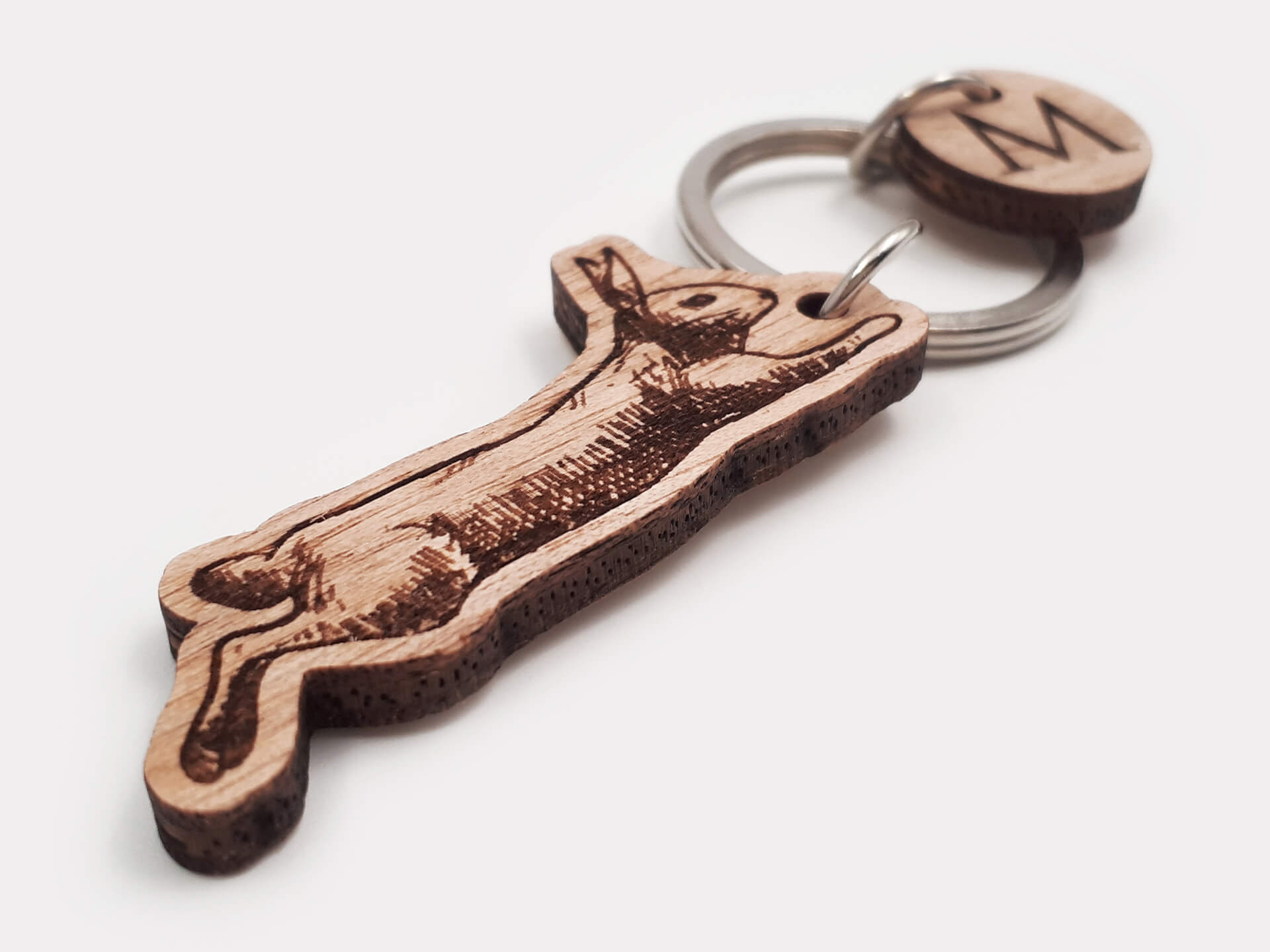 Πρωτότυπο ξύλινο μπρελόκ για το κυνήγι του λαγού, ένα μοναδικό δώρο για τους λάτρεις του κυνηγιού.