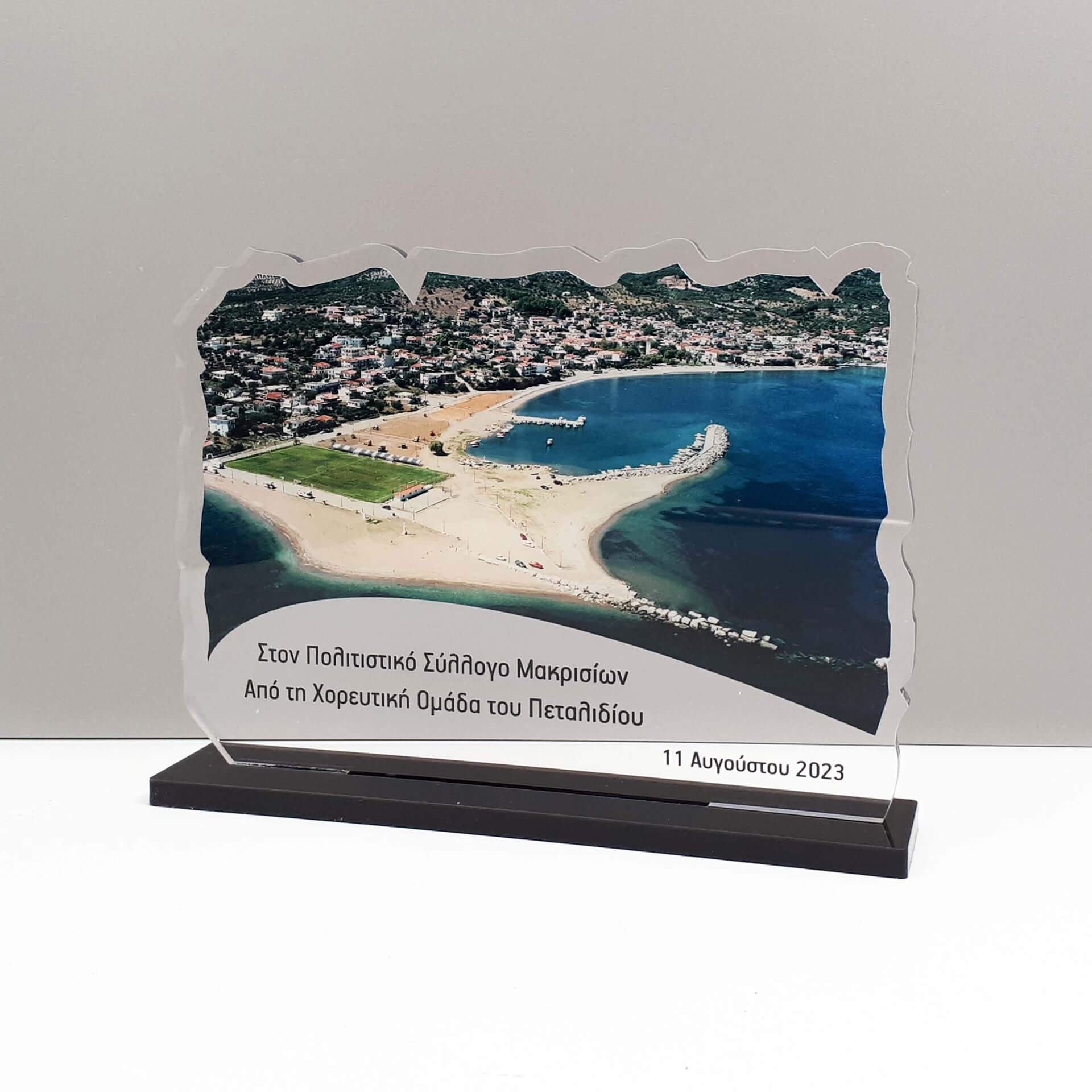 Αναμνηστική πλακέτα από plexiglass (ακρυλικό) με έγχρωμη εκτύπωση επάνω στο plexiglass