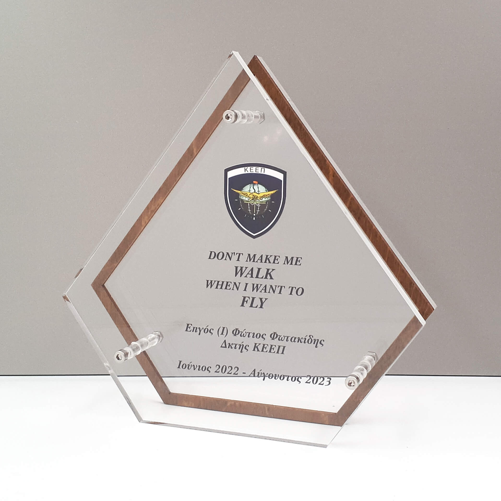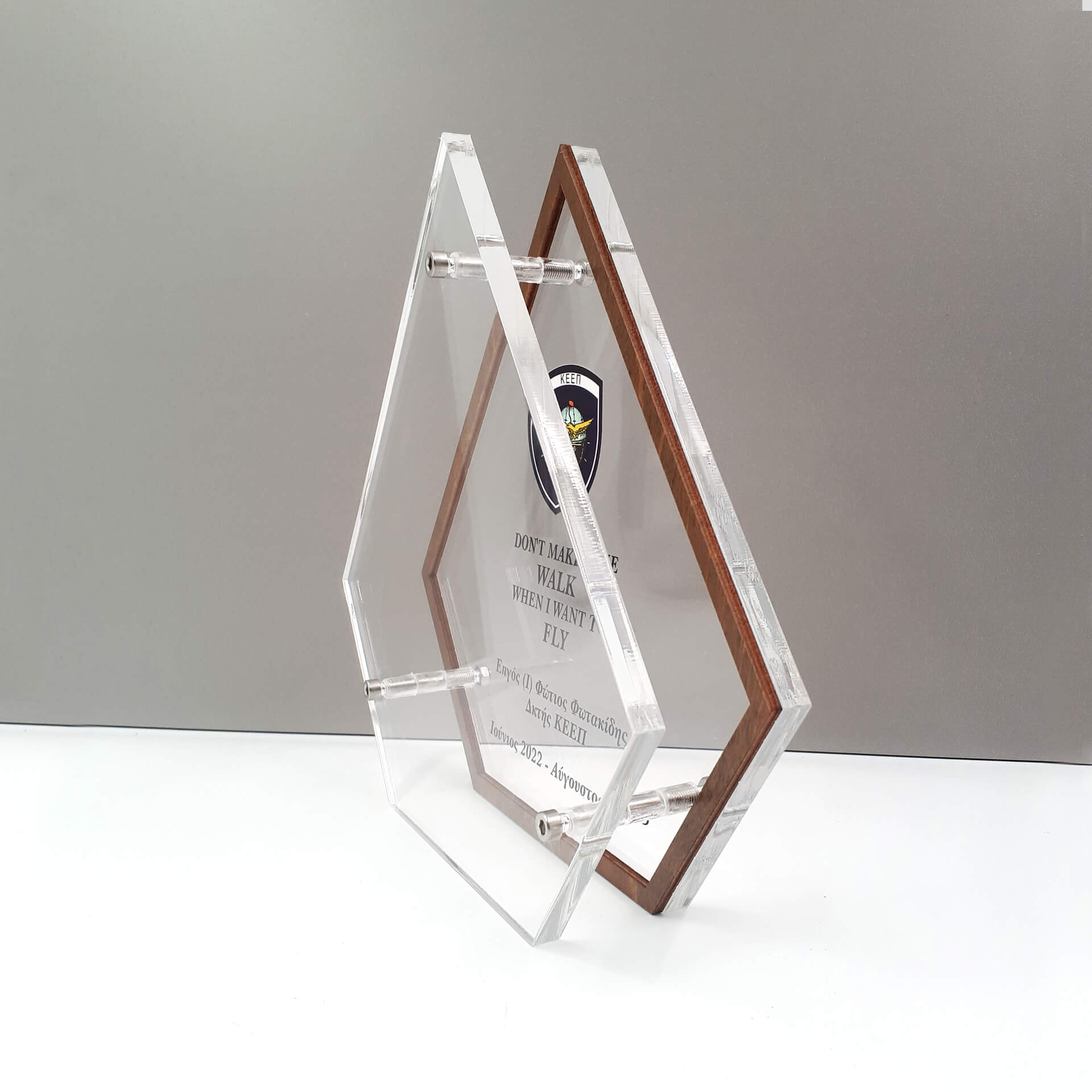 Αναμνηστική πλακέτα από plexiglass & λεπτομέρειες από ξύλο με έγχρωμη εκτύπωση επάνω στο plexiglass