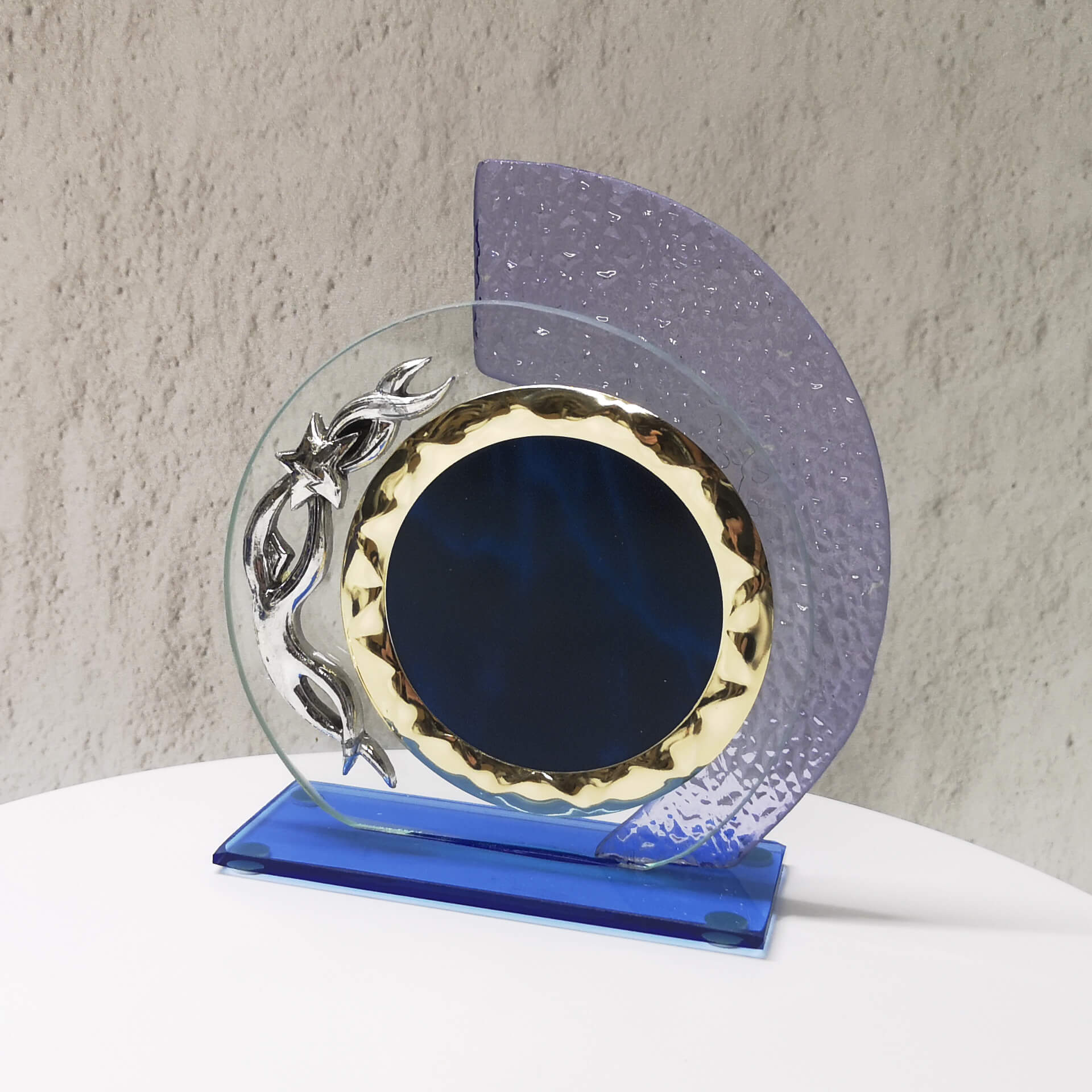 Γυάλινη πλακέτα απονομής με μπλέ αλουμίνιο