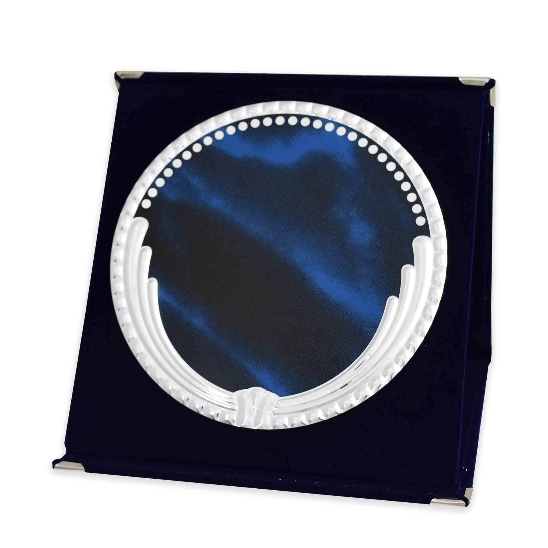 Τιμητική πλακέτα με βελούδινη κασετίνα μπλε χρώματος με μεταλλικές λεπτομέρειες και μπλε αλουμίνιο