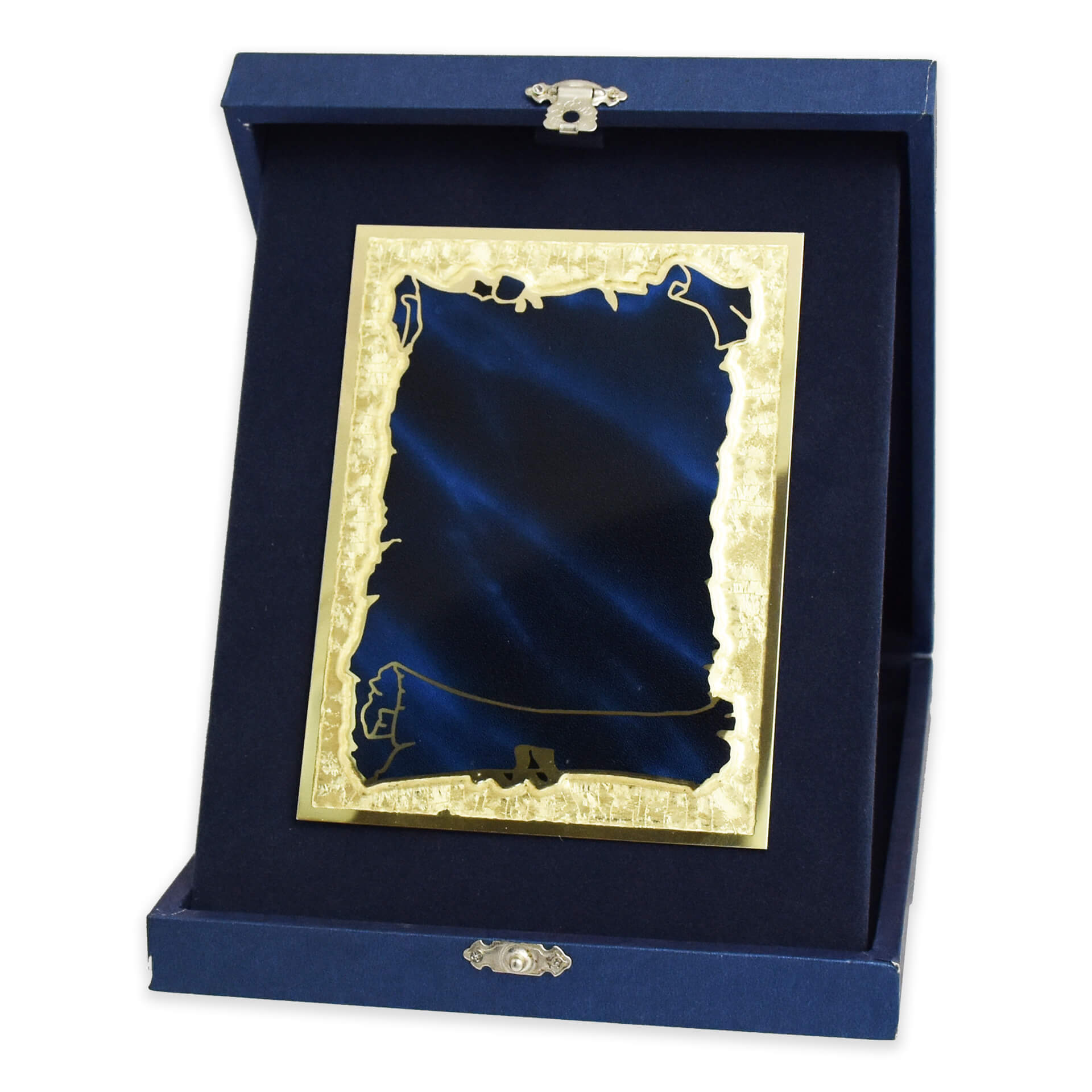 Τιμητική πλακέτα με κασετίνα μπλε χρώματος με μεταλλικό κούμπωμα και μπλε αλουμίνιο