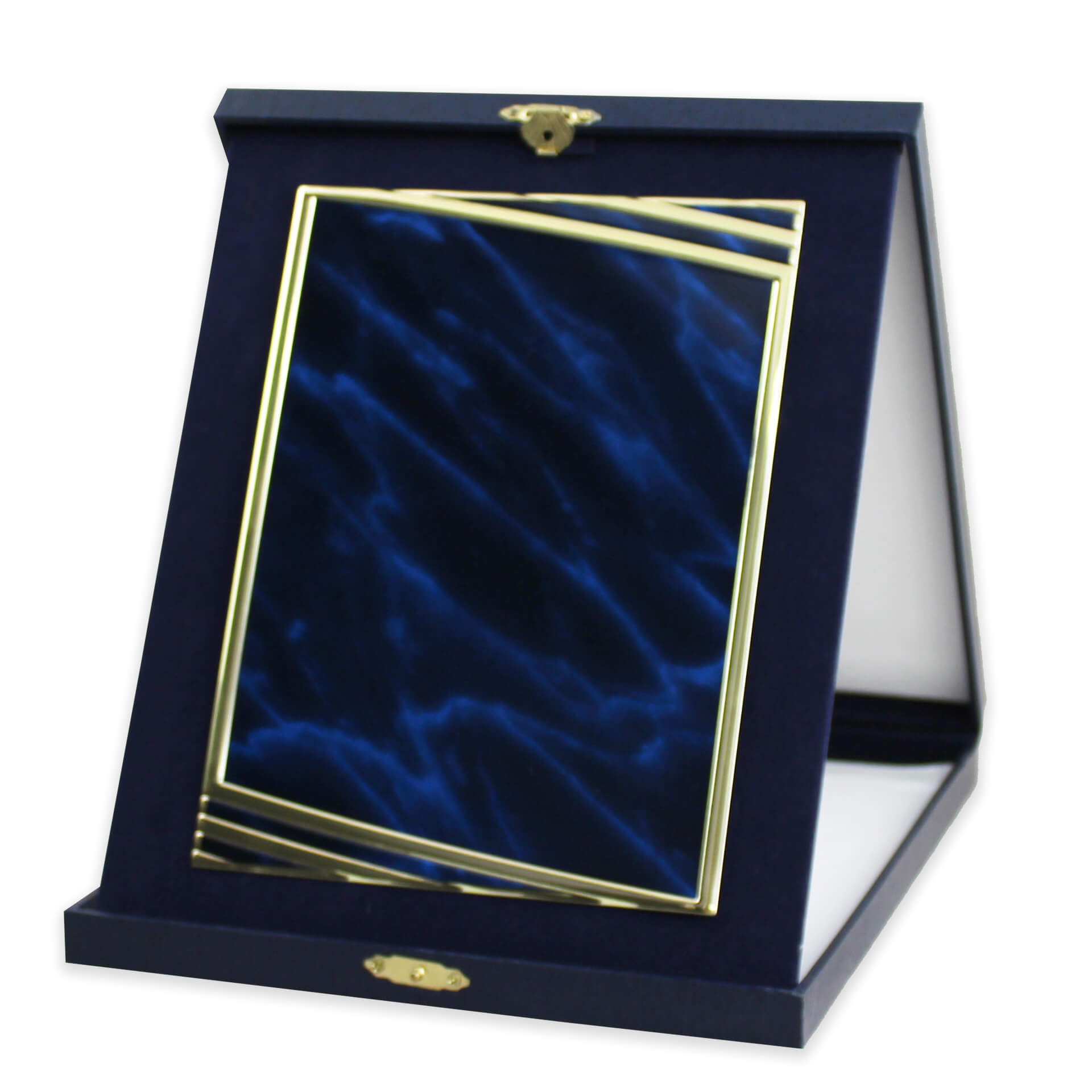 Τιμητική πλακέτα με κασετίνα μπλε χρώματος με μεταλλικό κούμπωμα και μπλε αλουμίνιο