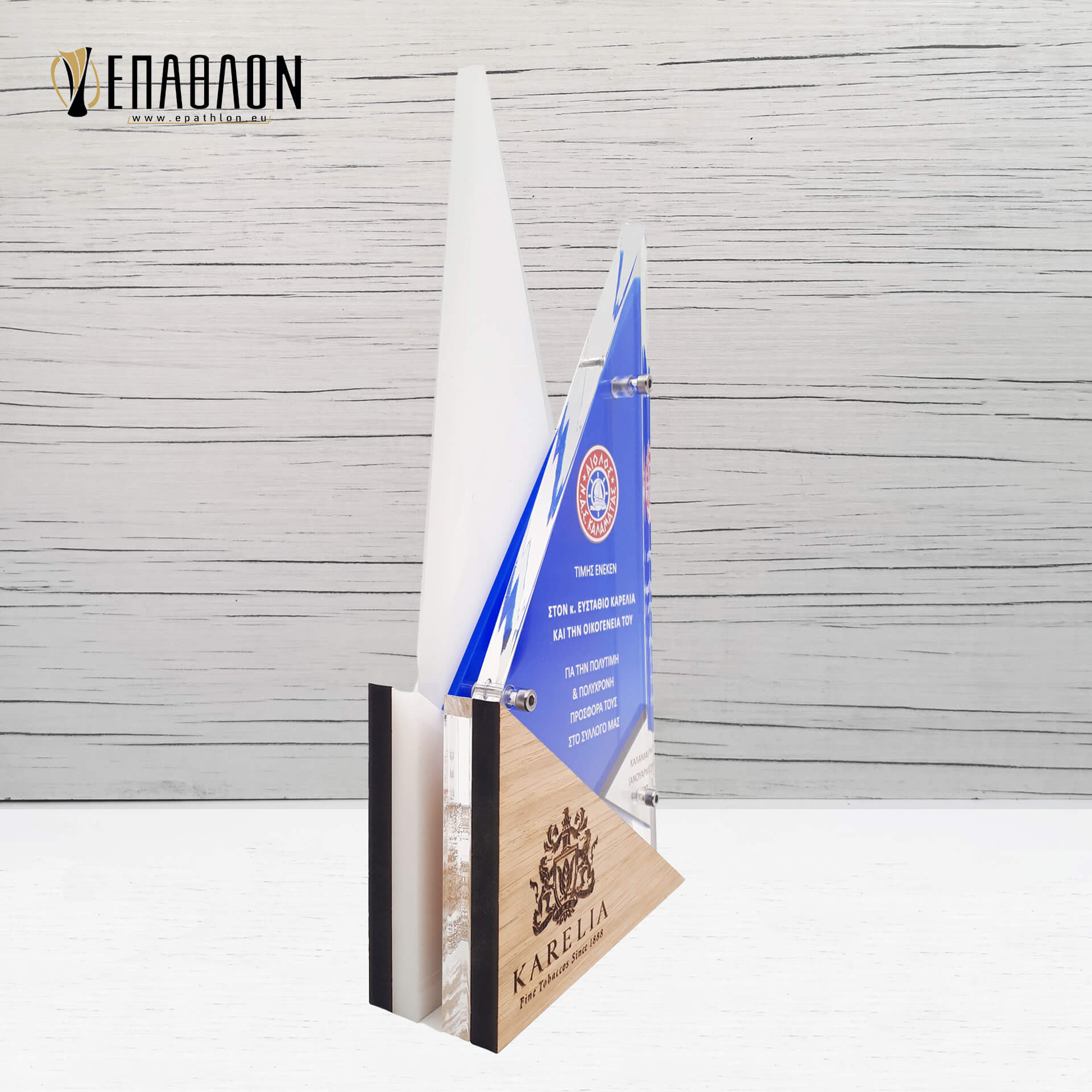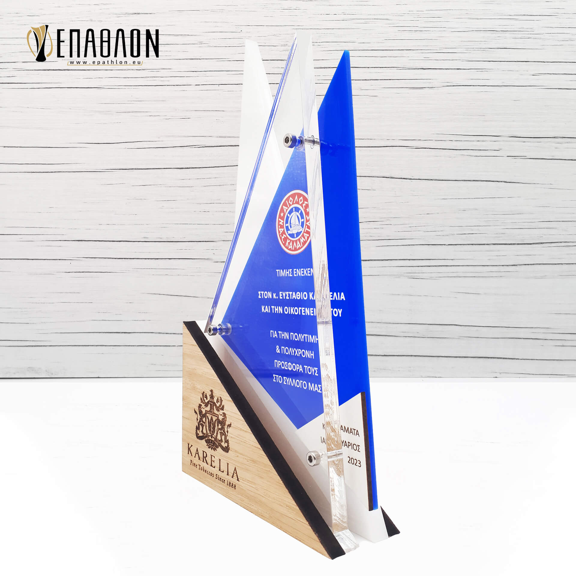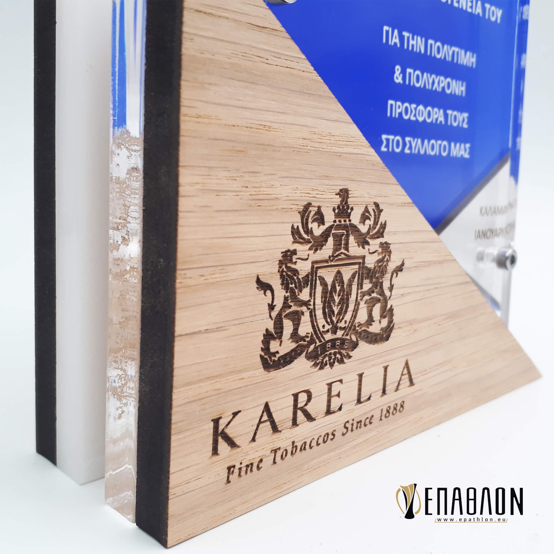 Αναμνηστική πλακέτα από plexiglass και ξύλο με έγχρωμη εκτύπωση επάνω στα υλικά
