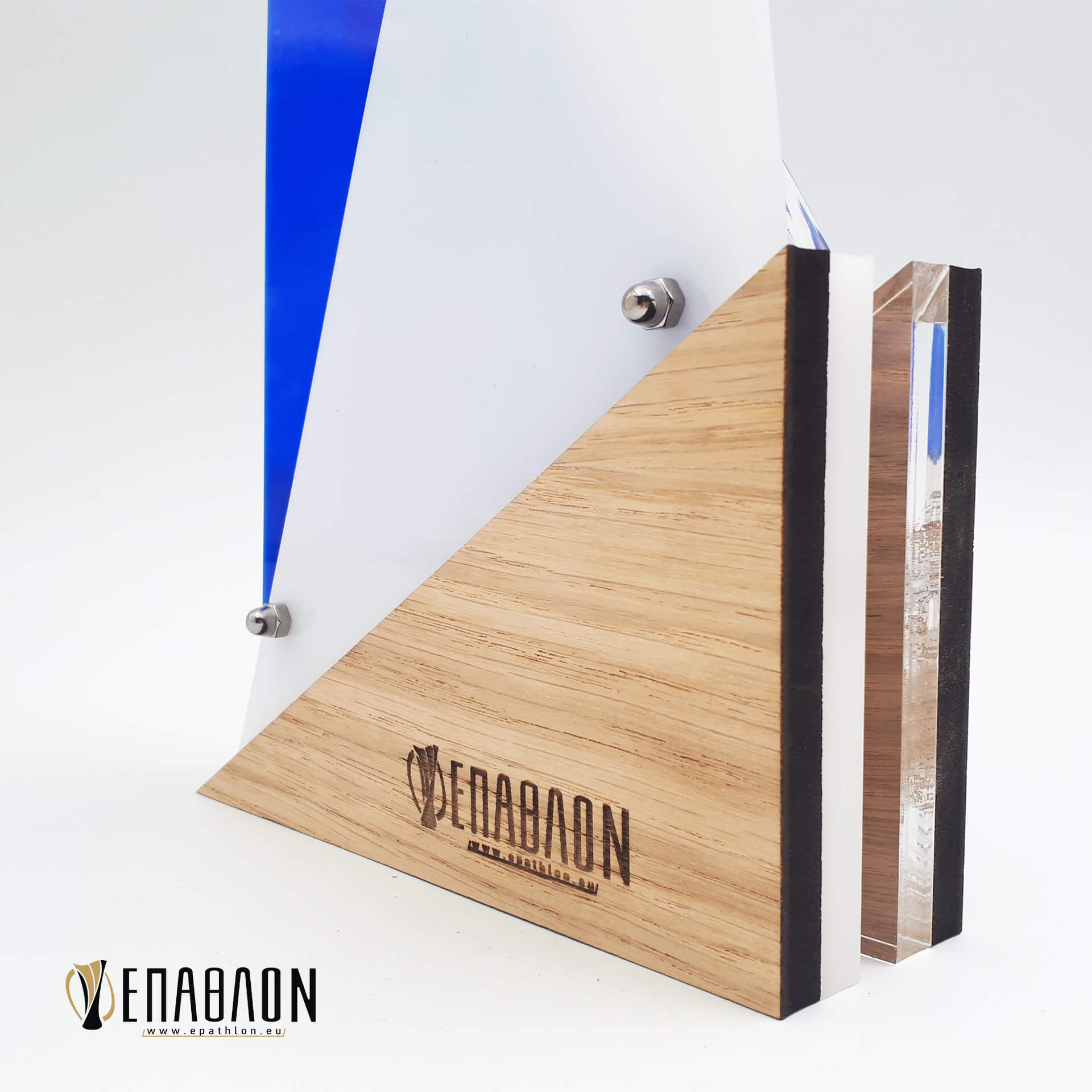 Υλικά: Plexiglass γαλακτερό πάχους 8mm, Plexiglass διάφανο πάχους 6mm, Ξύλο πάχους 9mm, Μπλε plexiglass πάχους 3mm