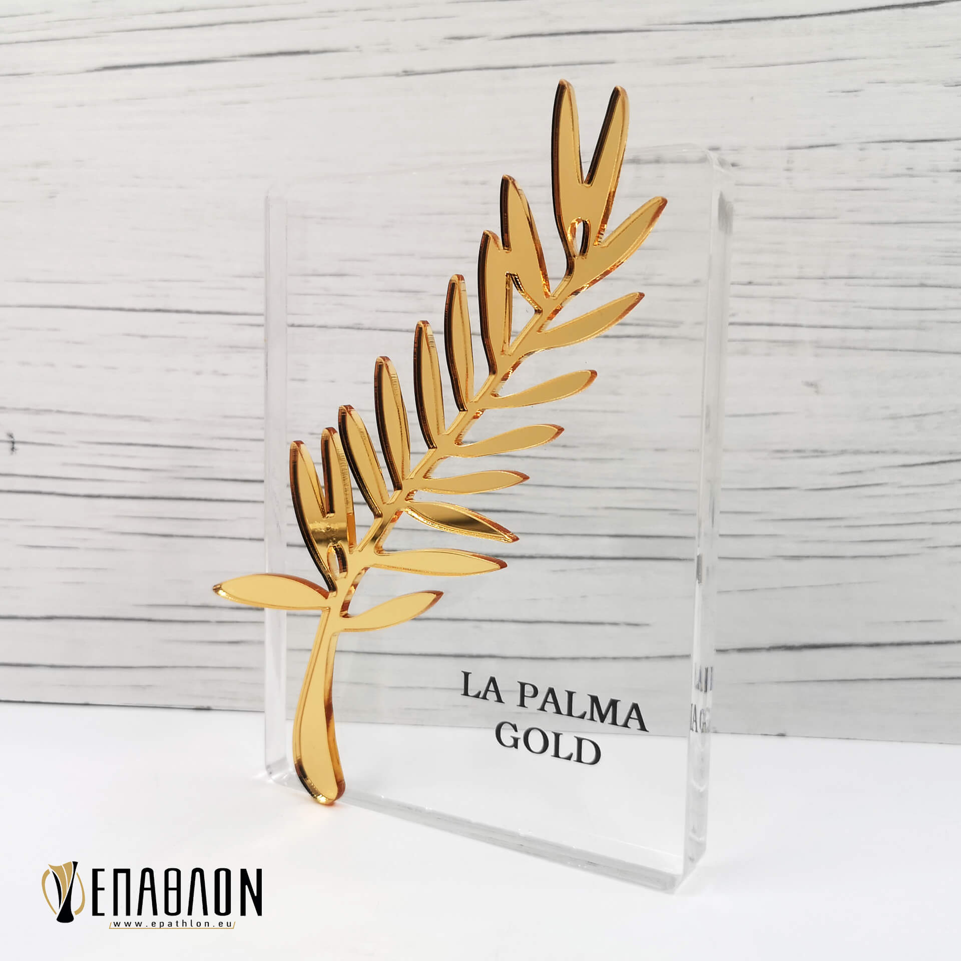 Υλικά: Plexiglass διάφανο πάχους 15mm, plexiglass καθρέπτης χρυσός πάχους 3mm